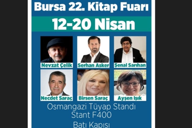 Osmangazi Belediyesi’nin standında kitapseverlerle buluşacak olan yazar ve şairlerin söyleşi ve imza programları belli oldu. 12 Nisan Cumartesi saat 13.00 Nevzat Çelik, 13 Nisan Pazar saat 15.00 Serhan Asker, 14 Nisan Pazartesi saat 17.00 Ayşen Işık, 16 Nisan Çarşamba saat 14.00 Şenal Sarıhan, 18 Nisan Cuma saat 15.00’ta ise Necdet Saraç ve Birsen Saraç, sevenleriyle Osmangazi Belediyesi’nin standında bir arada olacak.