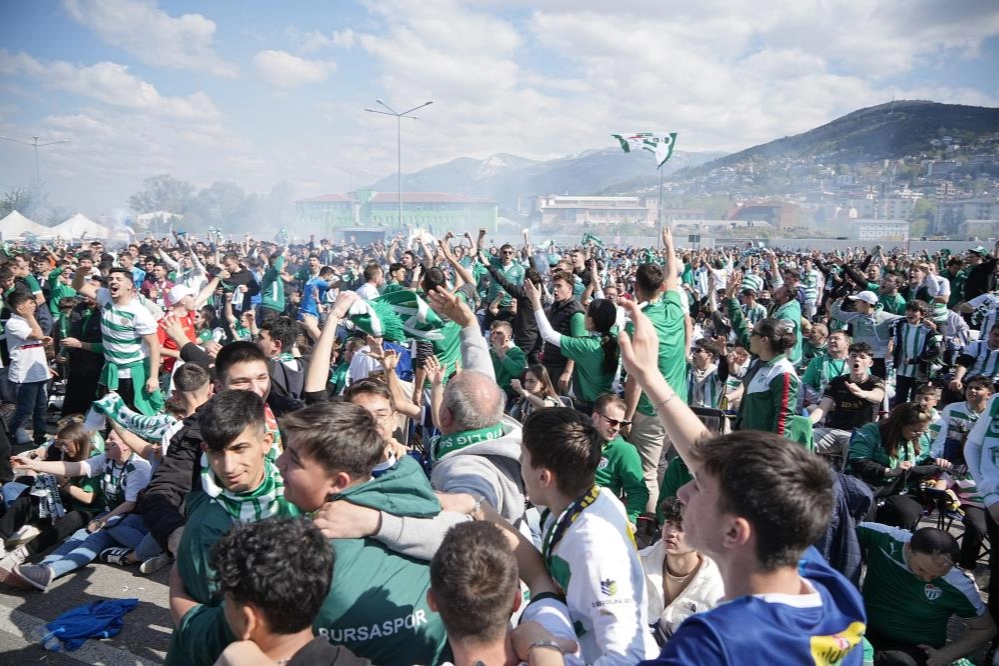 TFF 3. Lig'in 28. hafta mücadelesinde Bursaspor, Balıkesir'de Artvin Hopaspor ile karşı karşıya geldi. Maçın ilk yarısı 1-1 berabere tamamlanırken, yeşil-beyazlı ekip galip gelmesi durumunda şampiyonluğunu ilan edecek. Taraftarlar için Bursa'nın çeşitli yerlerine dev ekranlar kurulurken, Acemler İstasyonu Otoparkı'na kurulan dev ekranda da Bursalılar maçı takip etti. Şampiyonluk coşkusu ile ellerinde atkıyla alana gelenler maçın ikinci yarısını heyecanla bekliyor. Yüzlerce taraftarın oluşturduğu kalabalık dron ile havadan görüntülendi.