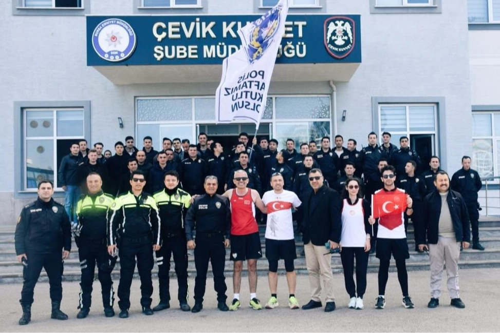 Türk Emniyet Teşkilatı'nın 180. yıldönümü sebebiyle Bursalı Yasin Avcı, Gülbeyaz Özdemir, Metin Bozkurt ve Emin Sonlu, açtıkları 'Polis Haftanız kutlu olsun' pankartıyla Kent Meydanı'ndan koşmaya başladı. Kent Meydanı'ndan başlayan maraton, 6 kilometre devam ederek Çevik Kuvvet Şube Müdürlüğü'nde son buldu. Sporcuları kapıda karşılayan Çevik Kuvvet Şube Müdürü Mustafa Akıncı karşılayarak makamında ağırladı.