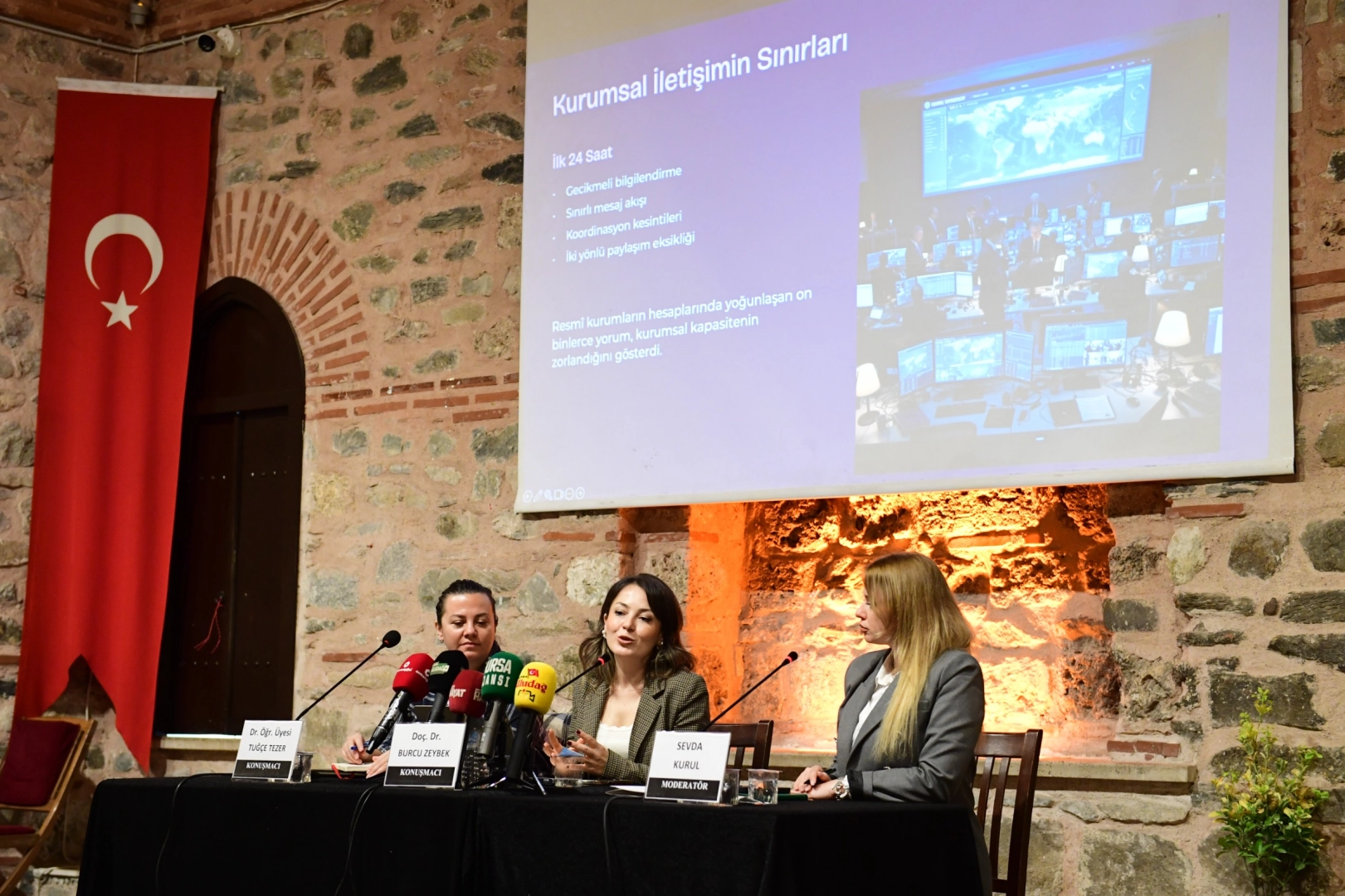 Afetlerin öncesinde, sırasında ve sonrasında olmak üzere bölümlendirildiğinde her bir süreç için her alandan bilim insanının, yerel yöneticinin, idari mülki amirin yapacağı pek çok şey olduğuna değinen Doç. Dr. Burcu Zeybek, şu açıklamalarda bulundu: “Artık dijital bir dönüşüm çağındayız, dolayısıyla sadece geleneksel medya değil dijitalde içerik ürettiğimiz tarafta da çok dezenformasyon ve krizin büyümesine açık bir ortam var. Çünkü orada herkes içerik üreticisi ve biz bunu 6 Şubat depreminde yaşadık. Arkası gelmeyen ihbarlar, dezenformasyon içeriklerin çok geniş ve etkileşimli bir şekilde yayıldığını gördük. Bu platformlarda, hem içerik tüketicisi, hem üreticisiyiz ama teyide muhtaç bilgiyi etkileşim ağına sokmak burada yanlış olan. Bu platformların kullanıcıları olarak görevlerimizde etik ve yasal çerçeveyi bilerek içerik üretiyor olmak gerek. Teyit edilmemiş bilgi, algoritmaya takılıyor. Biliyorsunuz, orada algoritma üzerinden yürüdüğü için çok daha geniş kitleye duyurulmasına imkan veriyoruz. Bu platformların algoritmalara göre işlediğinin farkında olmak lazım. İçerik seçtiğini, gölge banlama yaptığını biliyor olmak gerekiyor. Önce tüketici olarak, sonra içerik üreticisi olarak bunun farkında olmak ve yasal, etik çerçeveleri bilmek gerekiyor.”