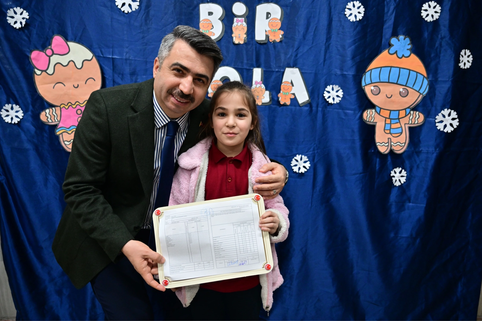 Başkan Yılmaz, Yıldırım Kaymakamı Metin Esen ve İlçe Milli Eğitim Müdürü Mustafa Sevinç ile birlikte Değirmenönü İlkokulu'nda düzenlenen karne törenine katıldı. Eğitimden spora, kültürden sanata kadar çocukları ve gençleri her alanda desteklediklerini belirten Başkan Oktay Yılmaz, törende öğretmenler odasını ziyaret ederek öğretmenlerle sohbet etti. Ardından Kaymakam Metin Esen ve İlçe Milli Eğitim Müdürü Mustafa Sevinç ile birlikte sınıfları gezen Başkan Yılmaz, öğrencilere karnelerini dağıtarak çeşitli hediyeler verdi.