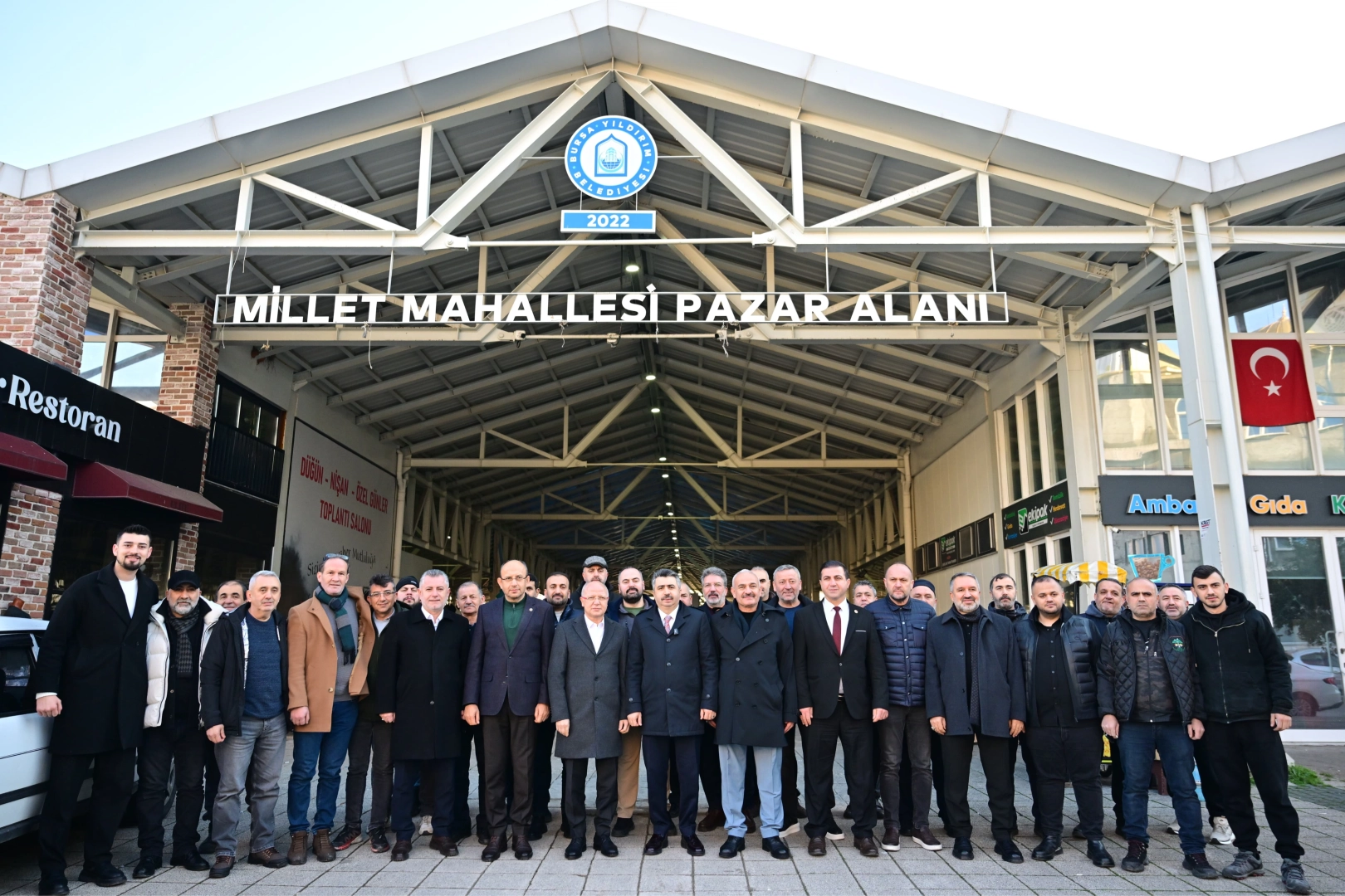 Pazar esnafının şehir ekonomisinin can damarlarından biri olduğuna dikkat çeken Başkan Oktay Yılmaz; "Pazar esnafımız hem üreticimizin ürününü vatandaşla buluşturuyor hem de ilçemizin ekonomik hayatına canlılık katıyor. Biz de sık sık semt pazarlarımızı ziyaret ederek esnaf ve vatandaşlarımızla bir araya geliyoruz. Bu ziyaretler hem talepleri birinci ağızdan dinlemek için hem de hızlı çözümler üretmek açısından önemli. Millet Mahallesi Kapalı Pazar Yeri esnafımızın daha önce bizden, pazar yerinin etrafının kapatılması yönünde bir talebi olmuştu. Esnafımızın talebi doğrultusunda hızlı şekilde çalışmamız gerçekleştirdik ve pazar yerinin etrafını kapattık. Bugün de hem yapılan çalışmayı inceledik hem de esnafımızla gönül sofrasında buluştuk. Bundan sonra da esnaf ve hemşehrilerimizle buluşmaya, Yıldırım’ı ortak akılla yönetmeye devam edeceğiz" dedi.
