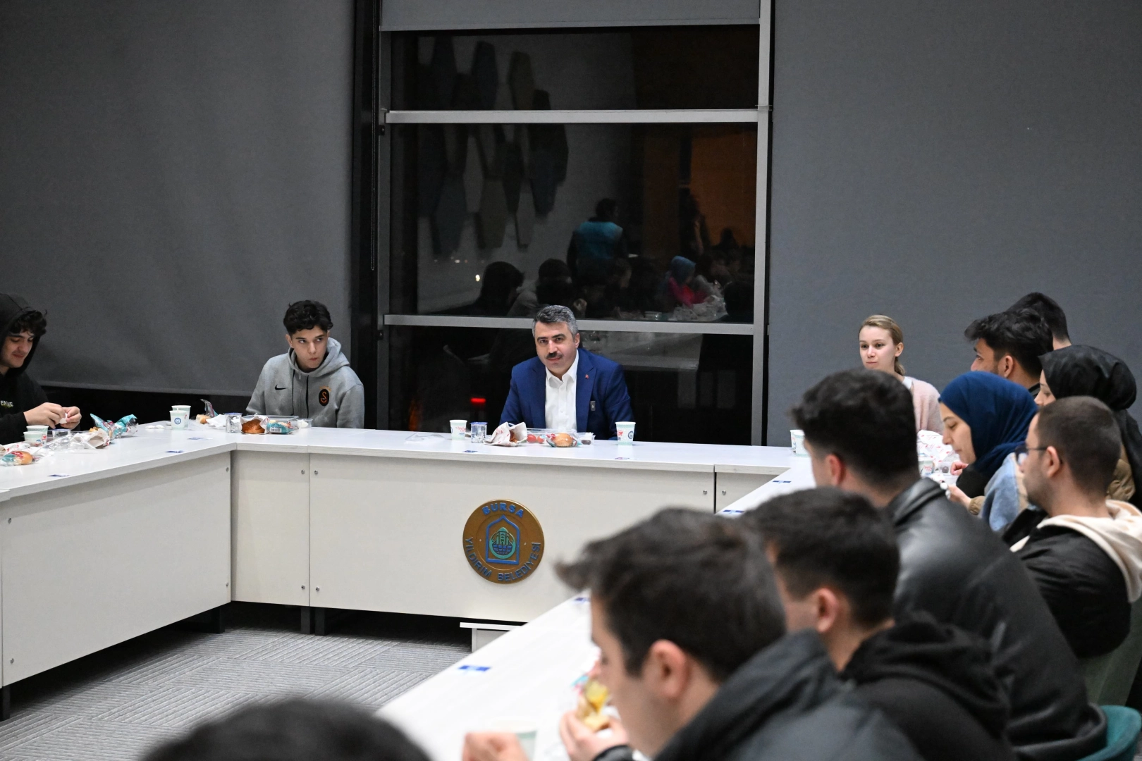 Yıldırım Belediye Başkanı Oktay Yılmaz, 7/24 açık olan Mümine Şeremet Uyumayan Kütüphanesi’nde ders çalışan öğrencilerle sahurda bir araya geldi. Yıldırım Belediyesi, açıldığı günden itibaren yüz binlerce genci ağırlayan Mümine Şeremet, Mimar Sinan ve Karapınar Kütüphanelerinde her gün 500 öğrenciye iftar, 150 öğrenciye ise sahur ikram ediyor. Ramazan ile birlikte ilçe genelinde birçok etkinliğe imza attıklarını hatırlatan Başkan Yılmaz, "Uyumayan Kütüphanelerimizde ramazan ayında da yüzlerce gencimizi ağırlıyoruz. Yıldırım Belediyesi olarak gençlerimize iftar ve sahur ikramında bulunuyor, onlarla aynı sofraları paylaşıyoruz. Onların enerjisinden güç alıyoruz" ifadelerini kullandı.
