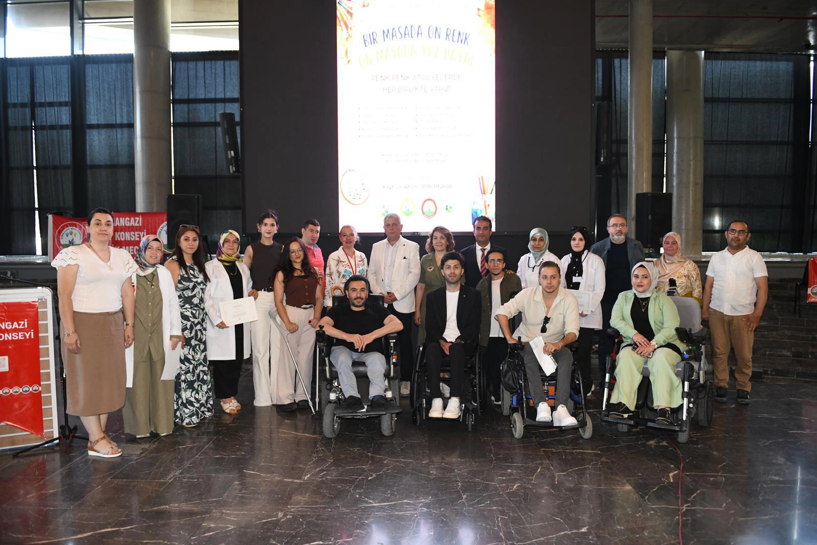 Osmangazi Belediyesi, Osmangazi Kent Konseyi Engelliler Meclisi ve Osmangazi Kent Konseyi Gençlik Meclisi tarafından düzenlenen ‘Bir Masada On Renk, On Masada Yüz Hayal’ etkinliği Panorama 1326 Bursa Fetih Müzesi’nde gerçekleşti. Toplumda farkındalık oluşturmak ve engelli bireylerin hayatlarına dokunmak amacıyla düzenlenen etkinliğe, engelli bireyler, aileleri ve engelsiz bireyler katıldı. Düzenlenen etkinlikte toplam 10 farklı sanat atölyesi kurularak 100 katılımcı, aynı anda üretmenin ve paylaşmanın heyecanını yaşadı. Her bir masada 10 kişinin katılım sağladığı atölyeler sayesinde, engelli ve engelsiz bireyler el ele vererek hem sanatla buluştu hem de farkındalık dolu bir gün yaşadı. Bu yaratıcı ve birleştirici etkinlikte, sanat yoluyla farkındalık oluşturmak ve engelli bireylerin toplumla iç içe olması hedeflendi.