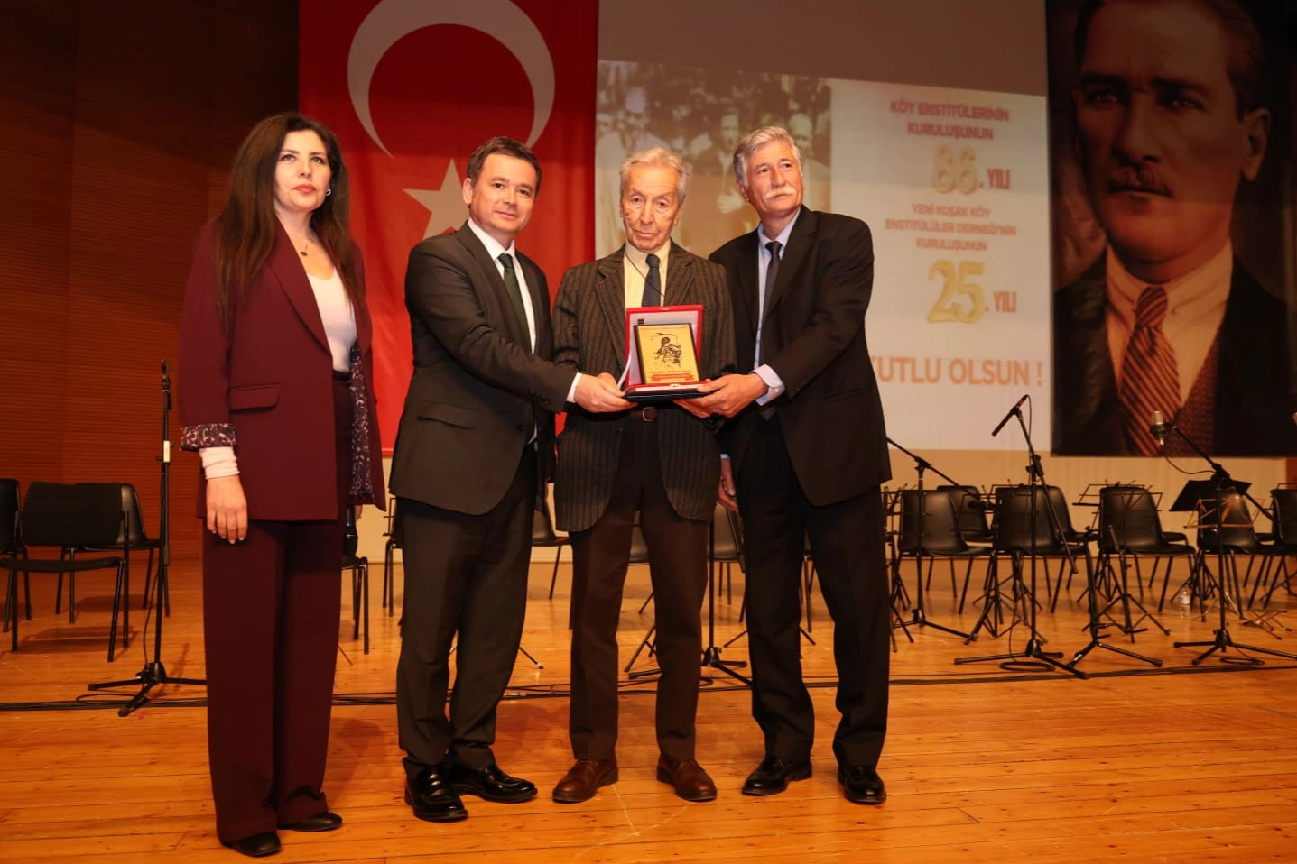 Saygın bilim insanı Prof. Dr. Bilsay Kuruç, Aydınlanma Onur Ödülü’nü Osmangazi Belediye Başkanı Erkan Aydın, Yeni Kuşak Köy Enstitülüler Derneği Genel Başkanı Prof. Dr. Ethem Duygulu ve Yeni Kuşak Köy Enstitülüler Derneği Bursa Şube Başkanı Jülide Akköprü’nün elinden aldı. Düzenlenen törende Hasan Ali Yücel Mandolin Orkestrası konser verirken, Yeni Kuşak Köy Enstitülüler Derneği Bursa Şubesi Halk Oyunları Topluluğu da sahnelediği gösteriyle geceye renk kattı.