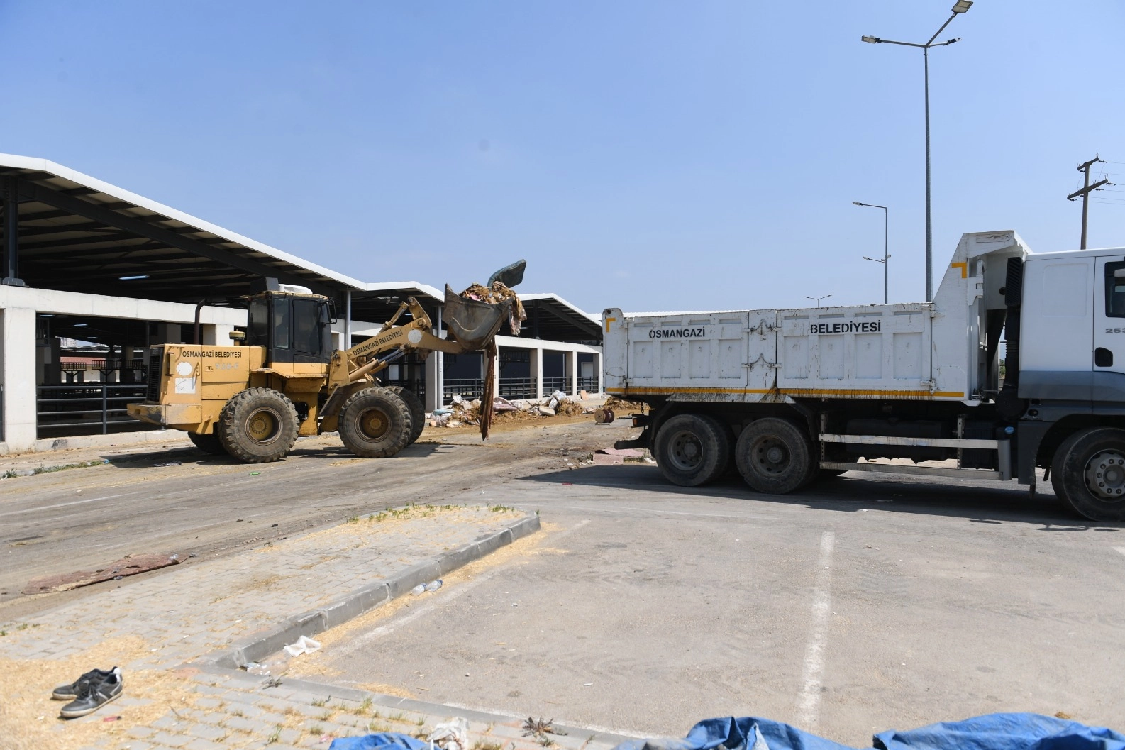 Kurban Bayramı’nda vatandaşların kurbanlık hayvan ihtiyaçlarını karşılamaları ve hijyenik ortamda kurbanlarını kesmelerini sağlamak amacıyla Geçit ve Veysel Karani mahallelerinde kurban satış yerleri oluşturan Osmangazi Belediyesi, bayramın ilk gününden itibaren bu noktalarda temizlik çalışmalarını aralıksız sürdürdü. Bayramın birinci ve ikinci gününde 23 noktadaki kurban kesim yerleri Temizlik İşleri Müdürlüğü ekipleri tarafından sürekli yıkanarak temizlendi. Yürütülen çalışmalar ile kötü koku ve görüntüye izin verilmedi. Fen İşleri Müdürlüğü ekipleri de bayramın üçüncü ve dördüncü gününde kurban satış alanlarındaki kalıntıları iş makineleriyle temizledi. Toprak alanlardaki atıklar kepçeler ile kaldırılırken, satış alanları koku ve sineklere karşı dezenfekte edildi.