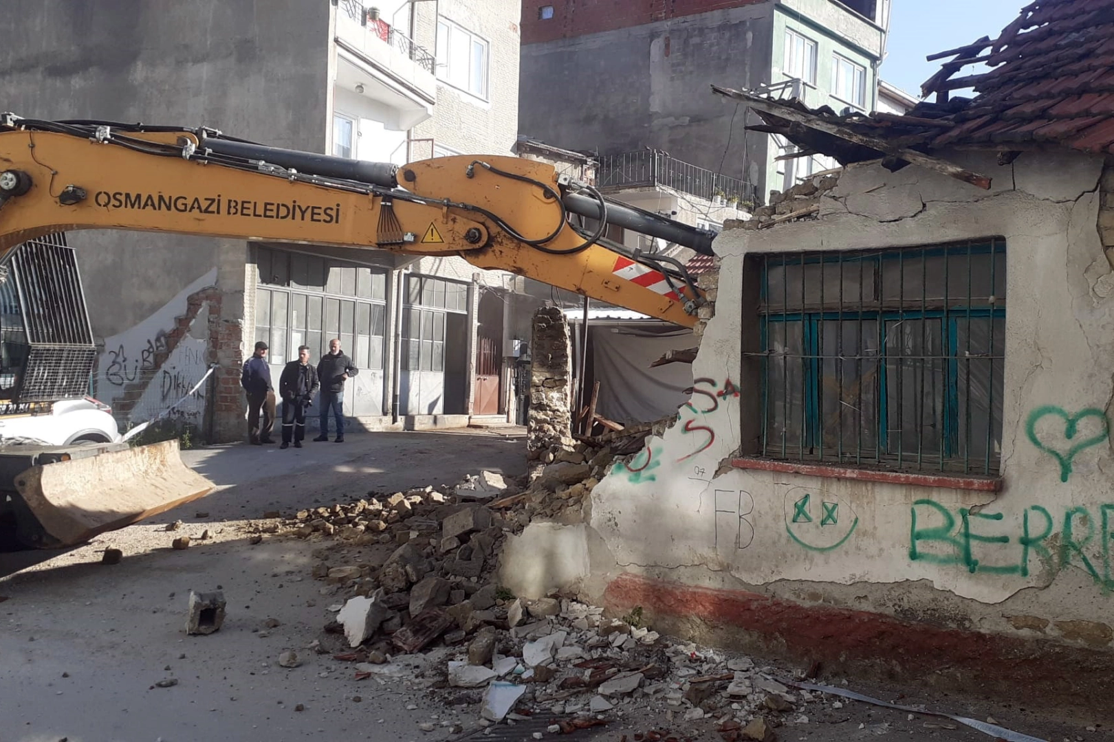 Osmangazi Belediyesi, ilçe genelinde tespiti yapılan ve yasal prosedürleri tamamlanan metruk binaları yıkmaya devam ediyor. Vatandaşlardan gelen talep ve şikayetleri dikkate alan Yapı Kontrol Müdürlüğü ekipleri, son olarak Tuna Mahallesi’nde yer alan metruk binayı yıktı. Belediye ekipleri, hukuki ve idari süreçleri tamamlanan binanın yıkımı sırasında herhangi bir olumsuzluk yaşanmaması için yıkım öncesinde gerekli tüm tedbirleri aldı. Yıkımın ardından ortaya çıkan molozlar ise belediye ekipleri tarafından kamyonlara yüklendi. Belediye ekipleri, mahalle sakinlerinin huzuru ve güvenliği için metruk binaları, yürürlükteki yasa ve yönetmeliklere göre yıkmaya devam edeceklerini söyledi.