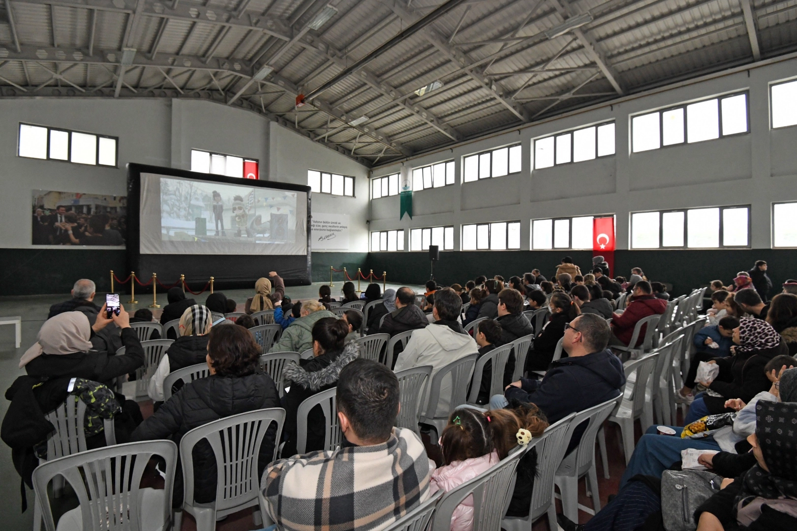 Sevilen animasyon filmi ‘Kartopu Savaşları 2’, rengarenk sahneleri ve eğlenceli hikayesiyle minik izleyicilere unutulmaz bir sinema deneyimi yaşattı. Yarıyıl tatilini çocuklar için eğlenceye dönüştüren Osmangazi Belediyesi, son olarak Ertuğrul Sağlam Spor Tesisi’nde gerçekleştirilen film gösterimi ile tatil coşkusunu zirveye taşıdı. Patlamış mısırlarını alarak salonu dolduran çocuklar; film boyunca ekrana kilitlenerek karakterlerin maceralarına ortak olurken, zaman zaman heyecan dolu anlar yaşadı. Ailelerin de yoğun ilgi gösterdiği etkinlikte veliler, çocuklarının mutluluğuna tanıklık ederken bu tür etkinliklerin devam etmesinden duydukları memnuniyeti vurguladı.