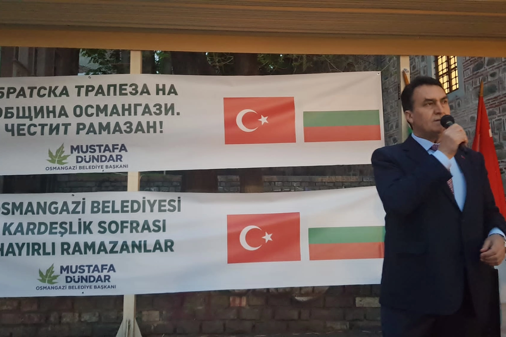 İftar öncesinde masaları tek tek gezen Osmangazi Belediye Başkanı Mustafa Dündar, soydaşlara Bursalıların selamını iletti. İftar programında konuşan Başkan Dündar, Türkiye olarak büyük bir afet yaşadıklarını belirterek, asrın felaketinde Bulgaristan ile birlikte dünyanın dört bir yanından gelen yardımlara teşekkür etti. Kahramanmaraş merkezli depremlerin büyük yıkımlara yol açtığını ifade eden Dündar, “Bu asrın felaketinin yaralarını sarmaya çalışıyoruz. Tüm insanlığın sahiplenmesi, hükümetimizin ciddi çalışmalarıyla birlikte depremin 20. günü kalıcı konutların temeli atıldı. İnşallah bir yıl sonra herkes yeni evlerine yerleşmiş olacak. Rabbim, hiç kimseye bir daha böyle acılar yaşatmasın.” dedi.