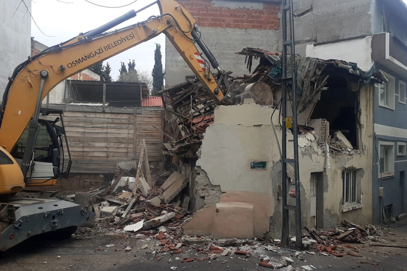 Osmangazi Belediyesi, halkın can ve mal güvenliğini tehdit etmesinin yanı sıra madde bağımlılarının mesken tutması nedeniyle de yoğun şikayetlere konu olan metruk binaların yıkımını sürdürüyor. Mahallelerde yaşayan halkı oldukça tedirgin eden metruk binalar, Yapı Kontrol Müdürlüğü ekipleri tarafından durum tespiti yapılıp, yasal işlemlerinin tamamlanmasının ardından yıkılıyor. Vatandaşlardan gelen talep ve şikayetleri dikkate alan belediye ekipleri, İvazpaşa Mahallesi’nde yer alan metruk binayı yıkmak için harekete geçti. Emniyet ve sağlık açısından risk oluşturan metruk bina, iş makinesi ile yıkıldı. Yıkımın ardından ortaya çıkan molozlar, belediye ekipleri tarafından kamyonlara yüklenerek yıkım alanı temizlendi.