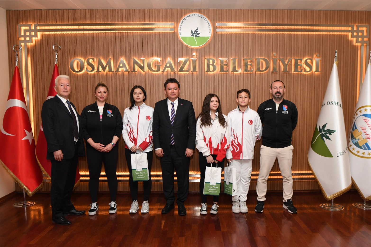 Katıldıkları turnuvalarda Bursa’yı başarıyla temsil eden ABFA Spor Kulübü eskrim sporcularını makamında kabul eden Başkan Aydın, genç sporcuları tebrik etti. U12 Erkekler Flöre Birincisi Vedat Tuna Karalar, U14 Bayanlar Flöre Birincisi Ada Küfeciler, Yıldız Kadınlar Flöre kategorisinde Türkiye Birincisi Ada Küfeciler, Genç Kadınlar Flöre kategorisinde Türkiye İkincisi Ayşe Aksoy, başarılarını Başkan Aydın ile paylaştı.