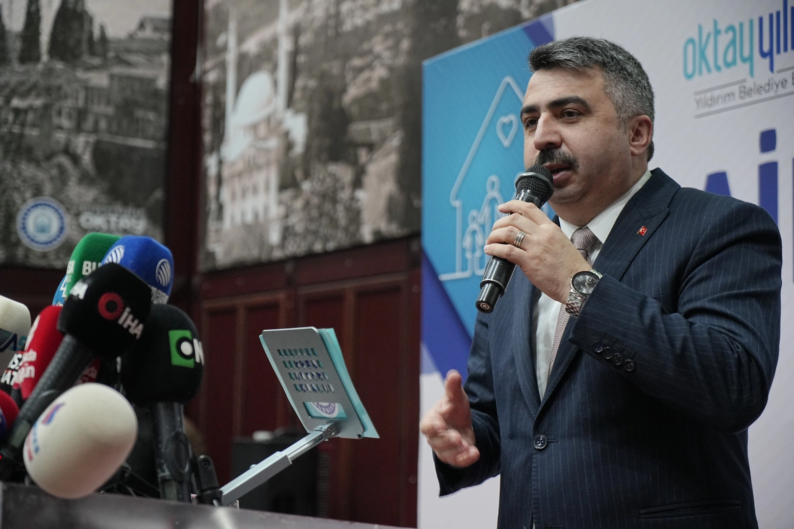 Yeni evlenecek çiftlere ücretsiz danışmanlık hizmeti ve 500 ailenin düğünü gibi birçok projeyi gerçekleştireceklerini söyleyen Yıldırım Belediye Başkanı Oktay Yılmaz, "Kadın, ailenin hem ayrılmaz bir parçası hem de lokomotifidir. Kadının ikincilleştirildiği, haklarından mahrum edildiği bir toplumda çocuklar da sağlıklı yetiştirilemez, aileler güçlü olamaz, siyasi ve ekonomik mekanizmalar da sağlıklı çalışamaz. Nihayetinde gerçek bir toplumsal refah, kalkınma ve adaletten bahsedilemez. Göreve geldiğimiz yıldan bugüne bu bilinçle kendi potansiyelini gerçekleştirme çabasında olan tüm kadınlar için birçok çalışmaya imza attık. Düzenlediğimiz eğitim, seminer, kampanya ve projeler ortak sermayemizdir. Düzenlediğimiz çalıştayın, gerçekleştireceğimiz çalışmalara rehberlik edeceğini düşünüyoruz. Aile, en kadim ve köklü müesseselerimizden birisidir. Sosyal ve kültürel dokumuzun örülmesinde asırlar ötesinden sürülüp gelen değerlerimizin bugüne ulaşmasında aile daima hayati rol oynamıştır. Toplumun özünü, cevherini, çekirdeğini teşkil eden aile kurumu, milli ve manevi değerlerimizin muhafazasında bizler için vazgeçilmez bir yere ve öneme sahiptir. Yıldırım Belediyesi olarak '2025 Aile Yılı' kapsamında aile akademisi ile bütüncül bir eğitim sistemi, yeni evlenecek çiftlere ücretsiz danışmanlık hizmeti, 500 ailemizin düğünü gibi birçok projeyi gerçekleştireceğiz. Aile bütünlüğünü ve ailenin sürekliliğini teşvik eden çocuk ve gençlerin zihinsel ve ahlakına olumlu yönde katkı sağlayan toplumsal değerleri gözeten koruyucu, önleyici, eğitici, geliştirici, rehberlik edici hizmet ve faaliyetleri inşallah bu dönemde yürüteceğiz" ifadelerini kullandı.