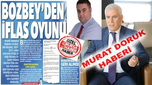 İddialara göre, Nilüfer Belediye Başkanı Mustafa Bozbey ve ailesine ait Bozbey İnşaat şirketi, 2008 yılında İcra İflas Dairesi’ne başvuruda bulunup, şirketin iflasını istedi. Bursa 8. İcra ve İflas Müdürlüğü’nde Dosya No: 2008/2 nolu dosya açıldı. 17 Mart 2015 tarihinde, 2. İlan çıkarılıp, alacaklılara ilan çıkarılıp, Bozbey inşaattan alacağı olanların başvuruda bulunmaları istendi.