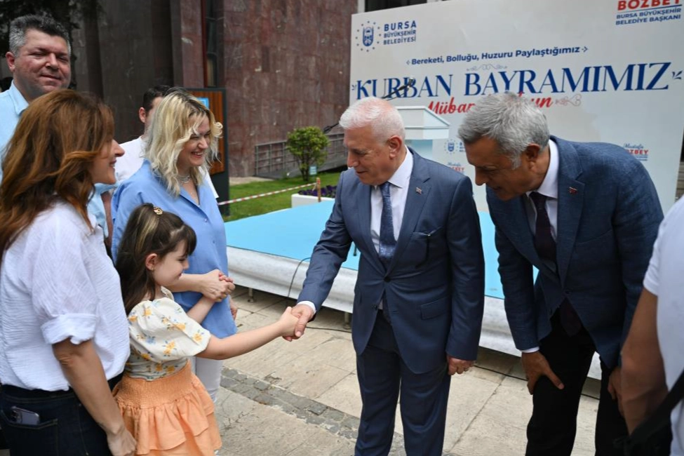 Özlenen kaliteli, adaletli ve eşit yönetim anlayışını hep birlikte Bursa'ya getireceklerini anlatan Başkan Bozbey, “Öncelikle personelimizin gülümsemesini arzu ediyoruz. Yaptığımız hizmetlerle vatandaşlarımızı memnun edeceğimize de inanıyorum” dedi. Bursa Büyükşehir Belediye Başkanı Mustafa Bozbey, Kurban Bayramı öncesinde Büyükşehir Belediyesi çalışanlarıyla bayramlaşma töreninde buluştu. Belediye binası yerleşkesindeki törende bayramların sevincin, kaynaşmanın ve birlikte olmanın en belirgin şekilde hissedildiği zamanlar olduğunu belirten Başkan Bozbey, “Her geçen gün daha da büyüyen ve sorunları artan kentimizin sorunlarının çözümünde her birinizin alın teri ve emeği olacak. Kentlerin çağdaş, modern ve yaşanabilir bir seviyeye gelmesinde belediyeler önemli bir güçtür. Bize layık görülen bu görevde özlenen, kaliteli, adaletli ve eşit yönetim anlayışımızı hep birlikte Bursa'ya getirmiş olacağız. Sizlerin mutluluğu ve motivasyonu, tüm hizmetlerde kentimize an be an yansıyacaktır. Bu dönemde her alanda ortaya koyacağımız hizmetlerimizle Bursa'yı daha güçlü bir şekilde geleceğe taşıyacağız. Kurban Bayramınızı en içten duygularımla kutluyorum. Aileniz ve sevdiklerinizle esenlik içinde, bereket ve huzur dolu bir bayram geçirmenizi diliyorum. Bayramınız kutlu olsun" diye konuştu. Başkan Mustafa Bozbey, konuşmasının ardından Büyükşehir Belediyesi bürokratları ve belediye personeliyle tek tek bayramlaşarak kestane şekeri ikram etti. Daha sonra BUSKİ Ana Binası'na geçerek BUSKİ personeliyle bayramlaşan Başkan Mustafa Bozbey, bu zamana kadar hizmetlerde emeği geçenlere teşekkür ederek, bundan sonra da dayanışma halinde en iyi hizmetleri Bursalılara vereceklerini belirtti. BUSKİ'nin en iyisini, en güzelini ve en niteliklisini yapabilecek tecrübeye sahip olduğunu anlatan Başkan Bozbey, “Yaptığımız hizmetlerle vatandaşlarımızı memnun edeceğimize inanıyorum. Bu inancı tüm personelimizde görmek istiyorum. Öncelikle personelimizin gülümsemesini arzu ediyoruz. Bizler de yönetim kadrosu olarak sizlerin güvence içerisinde yaşamanızı temin edeceğiz. Bizim tek amacımız var. Bursalıları gülümsetmek. Sahip olduğumuz 11 bin kilometrekarelik alanda BUSKİ olarak birçok hizmeti hayata geçirdik. Bundan sonra hizmetler devam edecektir. Kaliteli hizmet vermek insanları mutlu edecektir. Şimdiden sizlere teşekkür ediyorum. Yapacağınız fedakarlıklara ve güzel hizmetlere ailelerinizin de katkısı var. Onlara da teşekkür ediyorum. Önümüzdeki süreci en iyi şekilde değerlendirerek hep birlikte yöneteceğiz. Ailenizle birlikte sağlıklı, huzurlu ve mutlu bir bayram geçirmenizi diliyorum” dedi. Konuşmanın ardından Başkan Bozbey, BUSKİ yöneticileri ve personeliyle tek tek bayramlaştı.