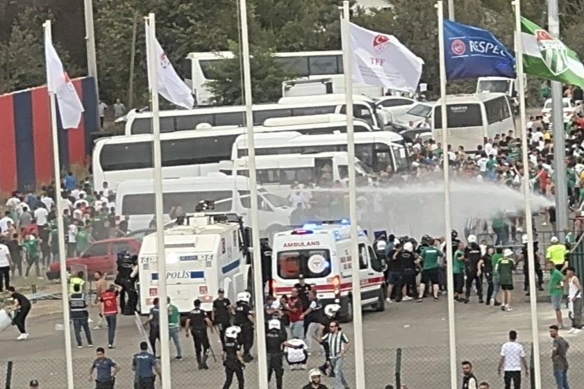 TFF 3. Lig Düzce'de olaylı başladı. Süper Lig şampiyonluğu bulunan Bursaspor, deplasmanda Düzcespor'a konuk oldu. Mücadeleye 450 kontenjanlık taraftar ayrılırken, Düzce'ye yaklaşık 5 bin Bursaspor taraftarı geldi. Deplasman tribünü hınca hınç dolunca, stada giremeyen taraftarlar dışarda olay çıkarttı. Sahaya girmek için bariyerleri yıkmaya çalışan Bursaspor taraftarlarına polis ekipleri biber gazı ve tazyikli su ile müdahale etti. Bursaspor taraftarlarının polis ekiplerine taş ve yabancı maddeler attığı görüldü. Daha sonra yeşil-beyazlı taraftarlar otobüslerine bindirildi. Olaylarda bazı taraftarlar çeşitli yerlerinden yaralanırken, bölgeye gelen sağlık ekiplerince müdahale edildi.