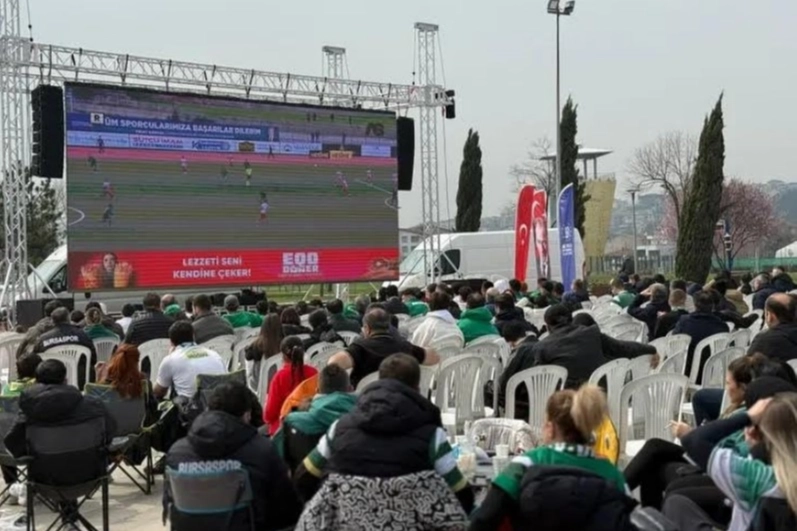 Bursa’da yeşil beyazlı coşku bu kez meydanlarda yaşandı. TFF 2. Lig’in 28. haftasında Bursaspor deplasmanda Kahramanmaraş İstiklal ile karşı karşıya geldi ve mücadele 0-0 berabere sona erdi. Bu sonuçla Timsah takipçileri ile arasındaki 6 puanlık farkı korudu. Bursa Büyükşehir Belediyesi, yeşil beyazlı taraftarı unutmadı. Süper Lig ve Avrupa yolculuğuna emin adımlarla ilerleyen Bursaspor için taraftarı hep birlikte, omuz omuza maç izlemeye çağırdı. Kültürpark’ta bulunan eski Atatürk Stadyumu alanında ile Hüdavendigar Kent Parkı’nda dev ekran kuran Bursa Büyükşehir Belediyesi, maçın heyecanını anbean ekranlara yansıttı. Yeşil beyazlı taraftarlar, ellerinde bayraklar ve formalarla alanları doldurarak takımlarına uzaktan da olsa destek verdi.