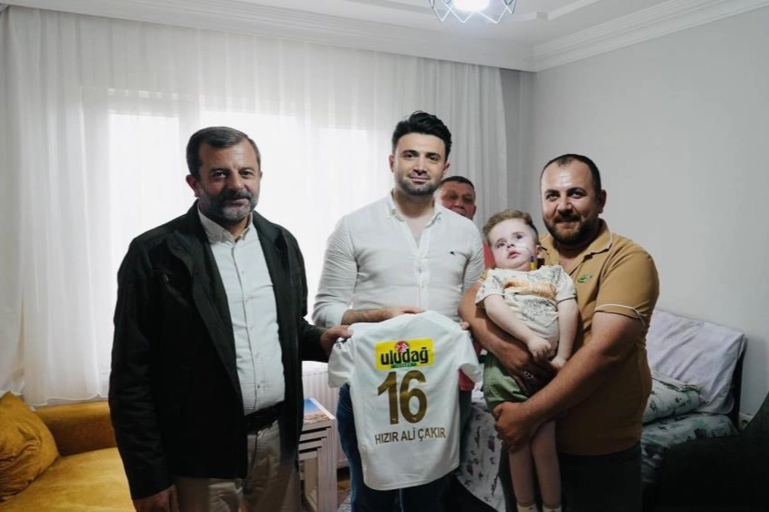 Bursaspor Başkanı Enes Çelik, Gürsu'da tedavi süreci devam eden minik yeşil beyazlı taraftar Hızır Ali Çakır'ı ziyaret etti. Başkan Çelik'e, Gürsu Belediye Başkanı Mustafa Işık da eşlik etti.