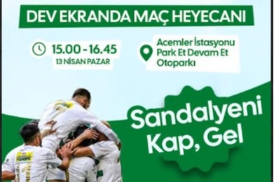Bursa'da büyük coşkuya geri sayım başladı. Timsahlar, yarın Balıkesir'de oynanacak şampiyonluk maçı hazırlıklarını sürdürürken şehri de büyük heyecan sardı. Bursa Büyükşehir Belediyesi, Bursa Büyükşehir Belediyesi, Bursaspor'un Artvin Hopaspor karşısında oynayacağı şampiyonluk maçının dev ekranda verileceğini duyurdu. Bursa Büyükşehir Belediyesi'nin sosyal medya hesabından yapılan paylaşımda, "Şampiyonluk maçında buluşuyoruz! Bursasporumuzun Artvin Hopaspor karşısında çıkacağı şampiyonluk maçını dev ekranda, omuz omuza izliyor, bu güzel yeniden doğuş hikayesine hep birlikte tanıklık ediyoruz. Sandalyelerinizi ve atkılarınızı unutmayın! Tarih: 13 Nisan 2025 Pazar Saat: 15.00 Adres: Acemler İstasyonu Park Et Devam Et Otoparkı" bilgisi verildi.