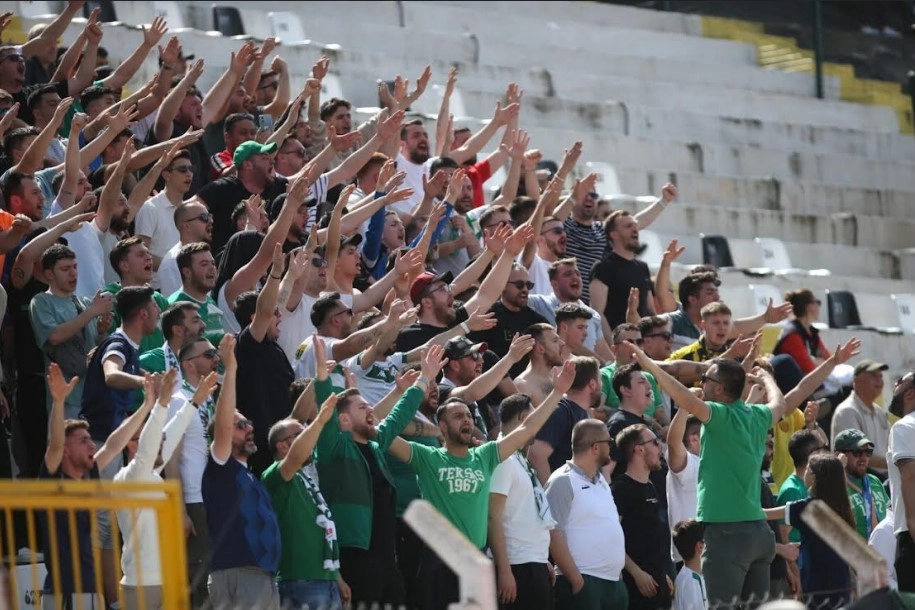Yaklaşık 100 kadar taraftar Kuşadası’na giderek tribündeki yerini alırken, yeşil beyazlı taraftarlar yönetim kurulu ile yan yana maçı takip etti.