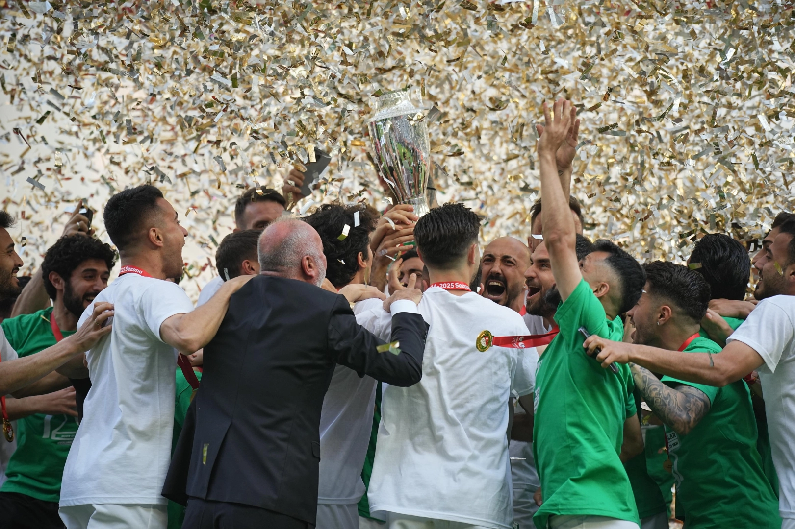 Nesine 3,.Lig 1.Grup’ta şampiyonluğunu geçtiğimiz hafta garantileyen Bursaspor, şampiyonluk kupasını dün Bursa’da oynadığı Bornova 1877 maçı sonrasında aldı. Evinde oynadığı son maçını 4-1 kazanan ve yeni bir seyirci rekoru kıran yeşil beyazlı ekip, maçın bitiş düdüğünden sonra da sahaya kurulan platformda madalyalarını ve şampiyonluk kupasını aldı.