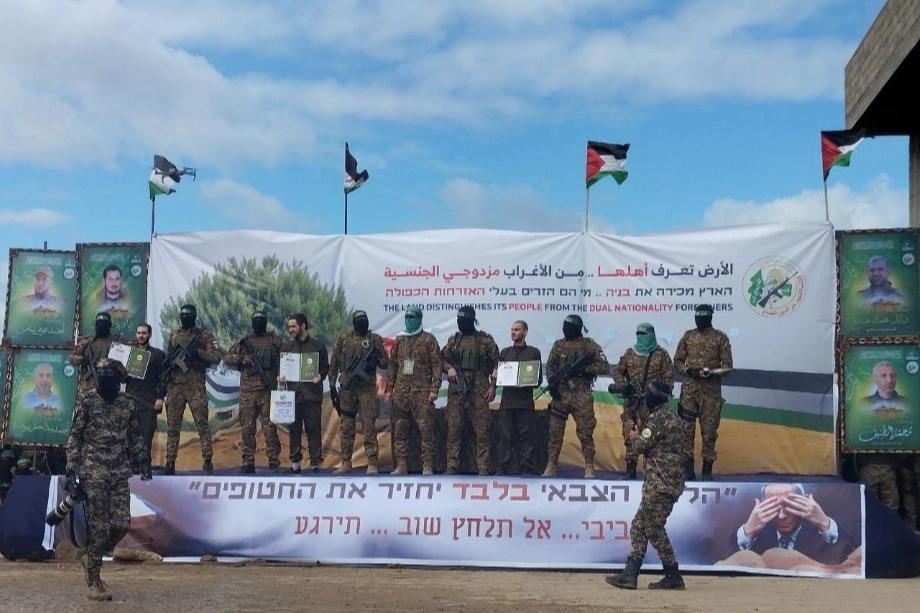 Teslim töreninin gerçekleştirildiği noktada kurulan platformda Kızılhaç yetkilisi ile Kassam Tugayları mensubu, esirlerin teslimine ilişkin belge imzaladı. Serbest bırakıldıklarına dair belge verilen 3 esir, platforma çıkarıldı. Bu sırada esirlerden Omer Shem-Tov, yanında duran Hamas mensubunu alnından öptü. Törenin ardından Kızılhaç aracına bindirilen esirler, Gazze'deki İsrail güçlerine teslim edilmek üzere yola çıkarıldı.