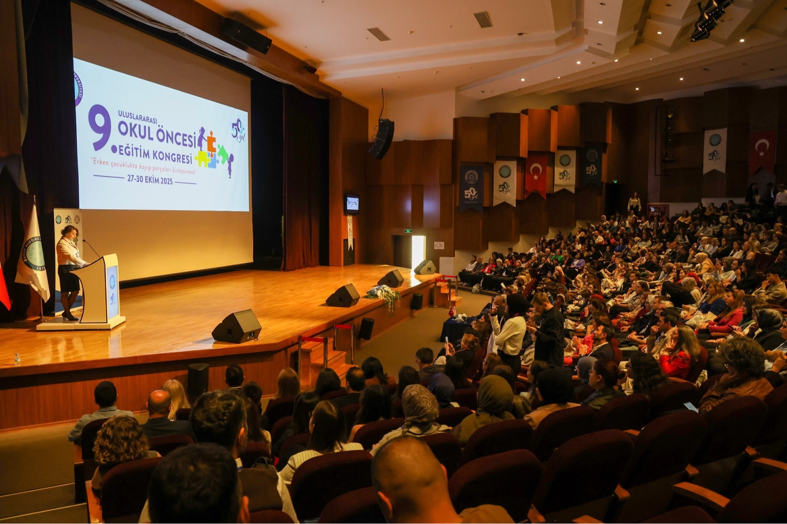 Prof. Dr. Mete Cengiz Kültür Merkezi’nde "Erken Çocuklukta Kayıp Parçaları Birleştirmek" temasıyla gerçekleştirilen kongre, alanın en kapsamlı bilimsel buluşmalarından biri olarak kabul ediliyor. Açılış töreninde BUÜ Rektörlüğü, Eğitim Fakültesi Dekanlığı, yerel yönetim temsilcileri, destekleyen kuruluşların yanı sıra çok sayıda akademisyen, öğretmen, sivil toplum kuruluşu temsilcisi ve öğrenci yer aldı.