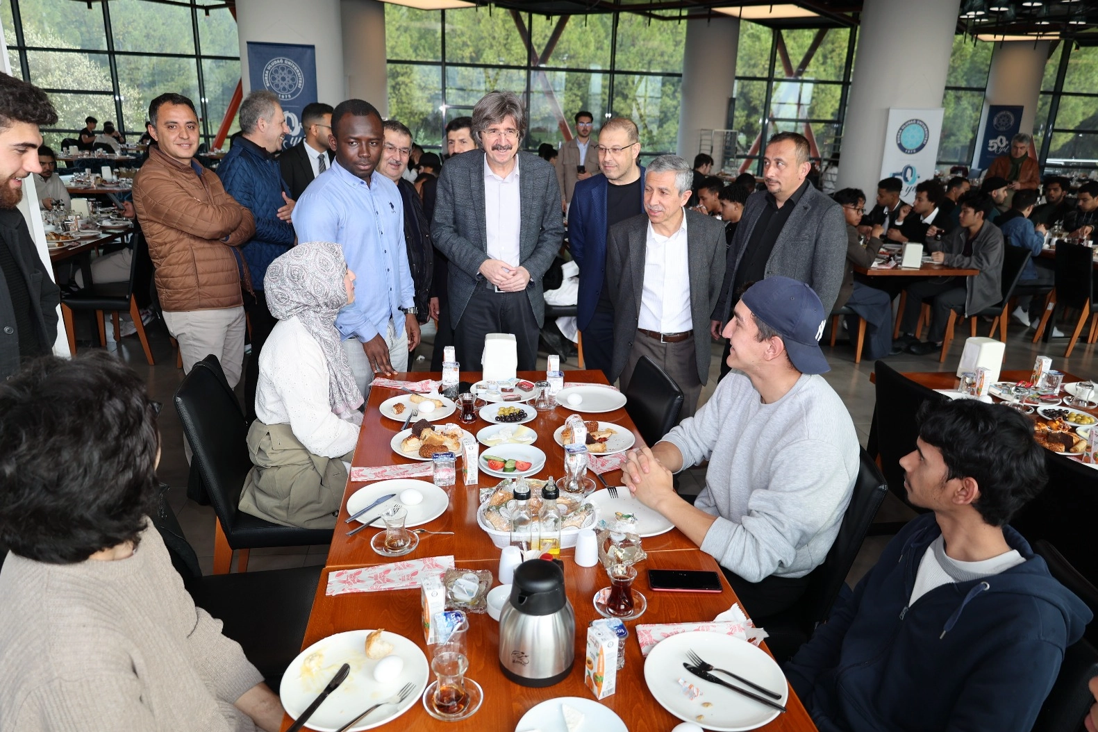 Törende öğrencilerle tek tek ilgilenen Rektör Prof. Dr. Ferudun Yılmaz, "Uluslararası öğrencilerimizle bayramın manevi atmosferini paylaşmak ve onlara memleketlerinden uzakta olduklarını hissettirmemek adına, bayram namazının ardından düzenlediğimiz kahvaltı programında bir araya geldik. Ramazan ayını geride bıraktık. Bayramın coşkusunu öğrencilerimizle paylaşmak, birlik beraberlik duygusunu pekiştirmek ve onların memleket özlemlerini bir nebze olsun dindirmeye çalıştık. Bursa Uludağ Üniversitesi ailesi olarak, farklı kültürlerden gelen öğrencilerimizin kendilerini evlerinde hissetmeleri için çalışmalarımıza devam edeceğiz. Bu anlamlı buluşmada emeği geçen herkese teşekkür ediyor, herkesin bayramını en içten dileklerimle kutluyorum" dedi.