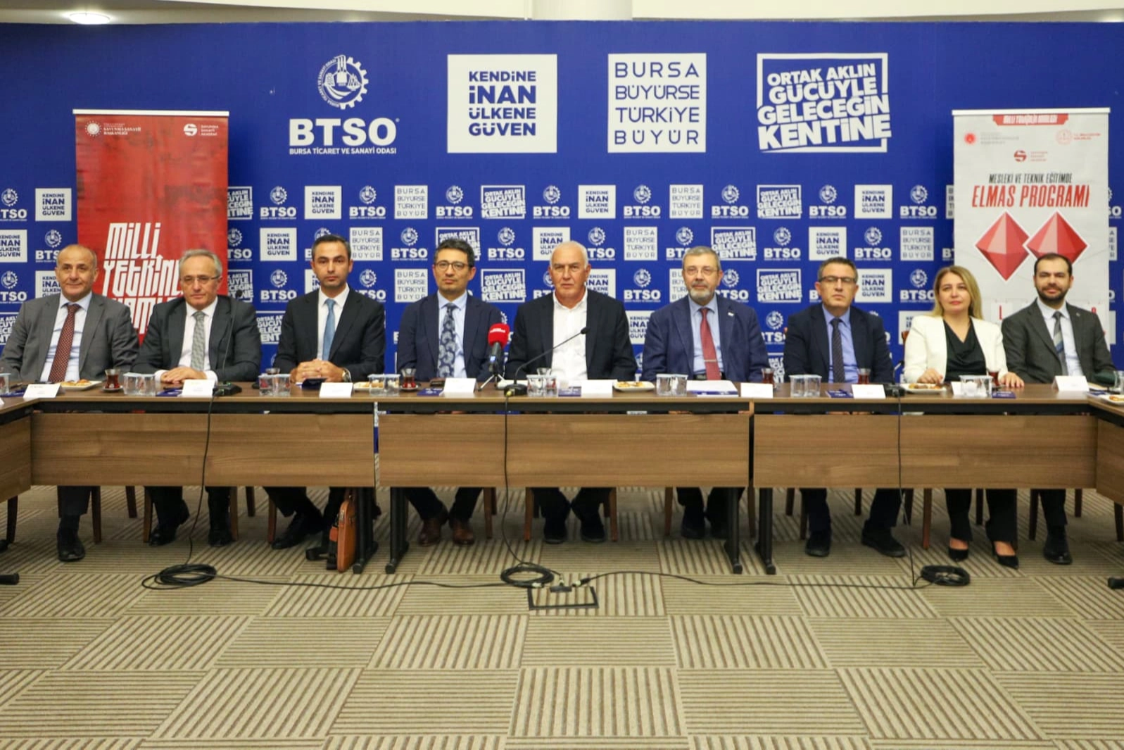 ELMAS Programı tanıtım toplantısına İl Milli Eğitim Müdürü Dr. Ahmet ALİREİSOĞLU, Sanayi ve Teknoloji İl Müdürü Aydın BAKOĞLU, Savunma Sanayii Akademi Başkanı Prof. Dr. Cenk Aktaş, BTSO YK Üyesi İbrahim GÜLMEZ, BTSO Uzay Havacılık Savunma Kümelenmesi Başkanı Mustafa HATİPOĞLU ve sektörün önemli isimleri katılım sağladı.