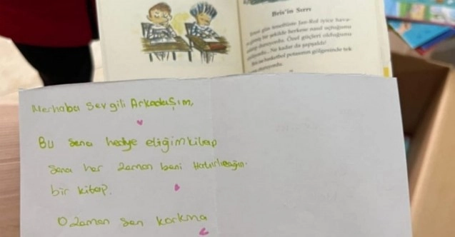 Buca Kızılay’ın Kitap Köşem Projesi çerçevesinde toplanan kitaplar İzmir’in Buca ilçesindeki köy okullarına teslim edildi. Köy kitap köşeleri için yapılan kitap bağışçılarından birinin kitap arasına bıraktığı not yürekleri ısıttı. Bağışçı yazdığı notta, “Merhaba sevgili arkadaşım; Bu sana hediye ettiğim kitap sana her zaman beni hatırlatacak kitap. O zaman sen korkma. Allah her zaman yanında olacak. Her zaman mutlu ol” ifadeleri yer aldı. Kızılay çalışanlarına duygusal anlar yaşatan notun Judi isimli bir çocuk tarafından yazıldığı bildirildi.