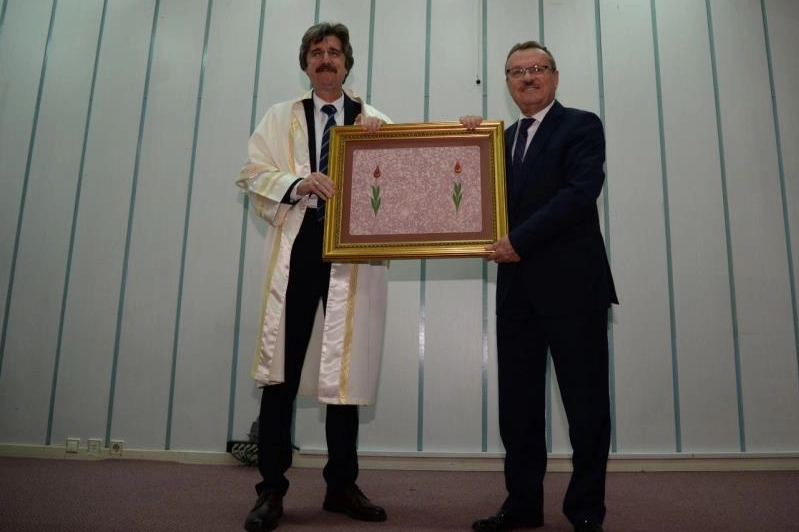 “Araştırma üniversitesi vizyonuna odaklanacağız” Akademik ve idari personel memnuniyetinin belli bir noktaya ulaştığını ve bu memnuniyetin yükseltilmesi adına da gayret göstereceklerini vurgulayan Prof. Dr. Ferudun Yılmaz; “Bir diğer önemli husus ise Araştırma Üniversitesi arasındaki yerimiz olacaktır. Bu üniversiteler her yıl kendi aralarında değerlendirmeye tabi tutuluyor. Ancak orada sert bir rekabet var. Bu ligde yer almanın avantaj ve dezavantajları var. Yaklaşık yarım asırlık bir geleneğe sahip Bursa Uludağ Üniversitesi’ni Araştırma Üniversiteleri arasında çok daha iyi yerlere getirmek için akademik ve idari kadromuzla hassasiyetle çalışmaya devam edeceğiz. Ne olursa olsun bu kavramı her zaman ön planda tutacağız” açıklamasında bulundu. Önceki Rektör Prof. Dr. Ahmet Saim Kılavuz’a hizmetleri için teşekkür eden Prof. Dr. Ferudun Yılmaz; “Hocamızla verimli bir 4 yıl geçirdik. Kendisinin tecrübelerinden faydalandık. İdarecilik anlamında da çok şey öğrendik. İnşallah bundan sonra hocamızın bıraktığı çıtayı daha da yukarılara çıkarmak için elden gelen gayreti göstereceğiz” dedi. Konuşmaların ardından Prof. Dr. Ahmet Saim Kılavuz, yeni rektör Prof. Dr. Ferudun Yılmaz’a cübbesini giydirdi ve çiçek takdimi gerçekleştirdi. Ardından da salon çıkışında tebrikler kabul edildi.