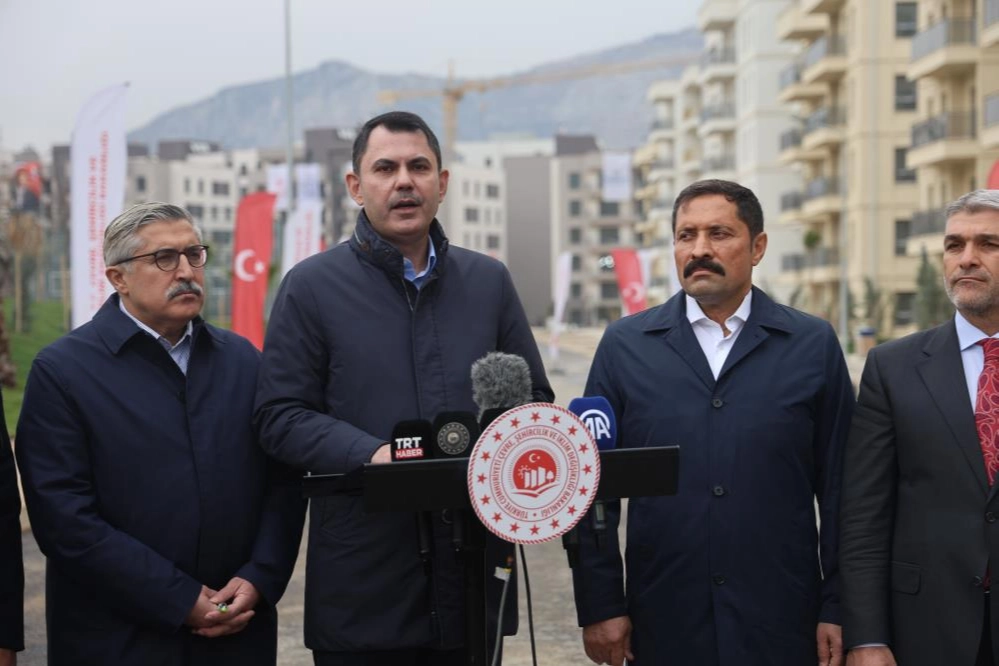 Çevre Şehircilik ve İklim Değişikliği Bakanı Murat Kurum, çeşitli temaslarda bulunmak üzere Hatay'a geldi. Bakan Kurum, ilk olarak Antakya kent merkezinde bulunan Emek ve Aksaray Mahallerinde incelemelerde bulunarak basın açıklaması yaptı. Yıl sonu itibariyle 454 bin konuttan fazlasını deprem bölgesinde hak sahiplerine teslim etmeyi planlandıklarını belirten Bakan Kurum, "Depremin ilk anından itibaren; şehrimizin yaralarını sarmak için gece gündüz demeden çalışıyoruz. Saatte 23, günde 550 konut üreterek dünyada eşi benzeri görülmemiş bir inşa seferberliği yürütüyoruz. Hamdolsun, ortaya koyduğumuz kararlılık sayesinde bugün; 11 ilimizin tamamında artık, neredeyse tüm evlerimizde ışıklar yanmaya başladı. Son anahtarları teslim ediyor, kalan son ailelerimizi de yeni yuvalarıyla, mutlu, huzurlu, güvenli gelecekleriyle buluşturuyoruz. Bildiğiniz gibi geçtiğimiz ay Adıyaman’da, Cumhurbaşkanımızın teşrifleriyle 350 bininci konutu, hak sahipleriyle buluşturmanın mutluluğunu yaşamıştık. İnşallah bu ay sonunda Hatay’da; 153 bin konutumuzun tamamını afetzede kardeşlerimize teslim etmiş olacak; buradaki sözlerimizi tamamen yerine getirmiş olacağız. Hemen ardından da 27 Aralık’ta; Cumhurbaşkanımızın teşrifleriyle, son anahtar teslim törenimizi büyük bir gurur ve huzurla yapacağız. Deprem bölgesindeki 11 ilimizde; yılsonu hedefimiz olan 453 bin konutumuzun çok daha fazlasını sahiplerine kavuşturacağız" dedi. 500 bin sosyal konut projesine 5 milyon 440 bin başvuru yapıldığını belirten Bakan Kurum, "Bildiğiniz gibi; Cumhurbaşkanımızın liderliğinde başlattığımız Yüzyılın Konut Projesi ile 500 Bin Sosyal Konut Projemizi hayata geçirdik. Milletimiz de projemize inandı, devletine, hükümetine, liderine güvendi ve 10 Kasım’da başlayan başvurularda şu anda 5 milyon 440 bin sayısına ulaştık. İlk kuraları 29 Aralık’ta çekeceğiz ve evlerimizin yapımına da hızlıca başlayacağız. Tabii proje kapsamında deprem bölgesindeki illerimizi ayrıcalıklı tutarak, bu illerimize daha fazla kontenjan ayırdık. Hatay’ımıza da; Merkez, Antakya ve Defne’de 6800, Hassa’da 1500, İskenderun’da 1354, Reyhanlı’da 750, Kırıkhan’da 600 olmak üzere 15 ilçemizde; tam 13 bin 289 sosyal konutu sunacağız. İnşallah sosyal konutlarımızla da Hatay’ımızda ev sahibi olmayan vatandaşlarımıza huzurlu yuvalar kazandıracağız" dedi.
