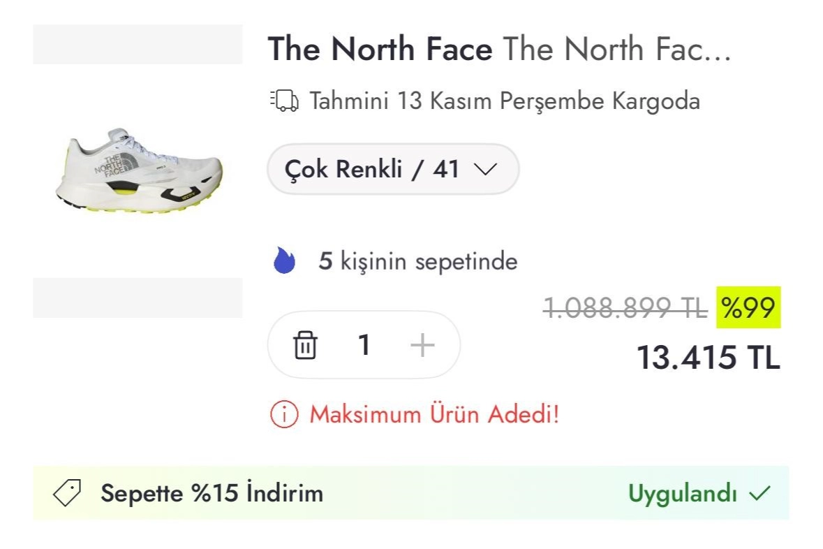 Bir online alışveriş sitesinde 11.11 indirimlerinde bu kez kampanyanın dozu kaçtı. Fiyatı 1 milyon 88 bin lira gösterilen ayakkabının fiyatı, yüzde 99 düşürülerek 13 bin 415 liraya indirilmiş gibi gösterildi. Tüketici Konfederasyonu (TÜKONFED) Başkanı Aydın Ağaoğlu, bunun yanıltıcı ilan ve reklam olarak haksız ticari uygulamalara girdiğini söyledi. Bu şekilde abartılı durumla karşılaşanların alo 175 tüketici ihbar hattına şikayet etmesini isteyen Ağaoğlu, "Ayrıca internet üzerinden Reklam Kuruluna iletildiği takdirde Ticaret Bakanlığı gerekli incelemeyi yaparak aldatıcı ilanlarla ilgili gerekli yaptırımları uygular" dedi. Önce zam sonra indirim Ülkede genellikle yapılan indirimlerin aldatıcı ve yanıltıcı olduğuna dikkati çeken Ağaoğlu, "Önce bindirip sonra indiriyorlar. Yasal mevzuata göre son 10 gün boyunca uygulanmış en düşük fiyattan indirim yapılabilir. Tüketici bu durumda malı satın alırsa indirimden önceki fiyatı satıcı ispatlamak zorunda. Aksi takdirde ödediği bedelin indirim oranı kadarını geri alabilir" diye konuştu. Ağaoğlu, bu konuda Ticaret Bakanlığının 11 Kasım indirimlerine dikkati çektiğini hatırlatarak, "Hem yanıltıcı reklam yapanları uyardı hem de tüketicileri dikkatli olmaya çağırdı. Şüpheli durumları tüketicilerin ihbar etmelerini istedi" ifadesini kullandı.