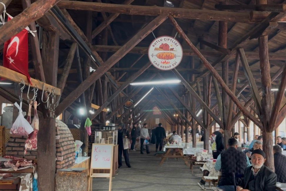 Kıpçak Türklerine ait bin yıllık bir kültür olan cağ kebabı, dağ yöresinde yetiştirilen merada beslenen kuzuların etlerinden yapılarak servis ediliyor. Handa bulunan 8 lokantadan birinin sahibi Ali Özkan, uzun yıllardır bu handa hububattan canlı hayvana birçok ürünün alınıp satıldığını tüccarların uğrak yeri olduğunu belirterek, "Buraya gelenler karınlarını doyursun diye yemek hizmeti de sunulmuş. Saç kavurma, güveç, köfte ızgara yapılıyor. Hepsi küçükbaş hayvan etinden pişiriliyor." dedi. Şap etkiledi müşterileri azaldı Hayvancılık yaptıklarını ve kendi küçükbaş hayvanlarının etinden kavurma yaptıklarını anlatan Özkan, "Burası bir kültürün adresi. Uzun yıllardır devam eden geleneği ayakta tutuyoruz. Şap hastalığı nedeniyle hayvan pazarı kapatılınca müşterimiz azaldı ancak normalde burada adım atacak yer olmazdı. Sadece turist ağırlıyoruz, hayvan alım satımına gelen olmayınca eski yoğunluk kalmadı burada" diye konuştu. Pazara gelenlerin önemli bölümünün kuzu kavurmayı övdüğünü bazılarının ise porsiyonun azlığından şikayet ettiğini dile getiren Özkan, "Çay tabağında porsiyonlar olduğunu söyleyenler oldu. Metal düz tabak olduğundan öyle geliyor ama tabağa döktüğümüzde porsiyonun miktarı daha net ortaya çıkıyor. Yani az değil porsiyonlarımız doyurucu" ifadesini kullandı. 40 yıllık ustayla bin yıllık kültürü getirdiler Küçükbaş hayvan yetiştiricisi ve handa lokanta sahibi İsmail Kutlu ise yaklaşık 400 yıllık tarihi handa farklı bir yemek sunmak istediklerini belirterek, Yusufeli'nden 40 yıllık cağ döner ustası getirdiklerini anlattı. Cağ kebapta kendi yetiştirdikleri kuzuların etlerini kullandıklarını dile getiren Kuzu, şunları söyledi: "Ağır kış şartları oluşmadığı sürece yem kullanmayız hayvanlarımızda. Hepsi dağda, bayırda, merada beslenir. Kekik, nane, ot ne bulurlarsa doğal beslenirler. O yüzden etimizin lezzetinde de iddialıyız; hem doğal hem organiktir. Bu han yüzlerce yıllık bir kültürü temsil ediyor. Biz de buraya ünü yurt dışına taşmış cağ kebabı getirdik. Farklı olunca ilgi de görüyoruz. Şap nedeniyle kapatılan pazar açılsa daha güzel olacak işlerimiz."