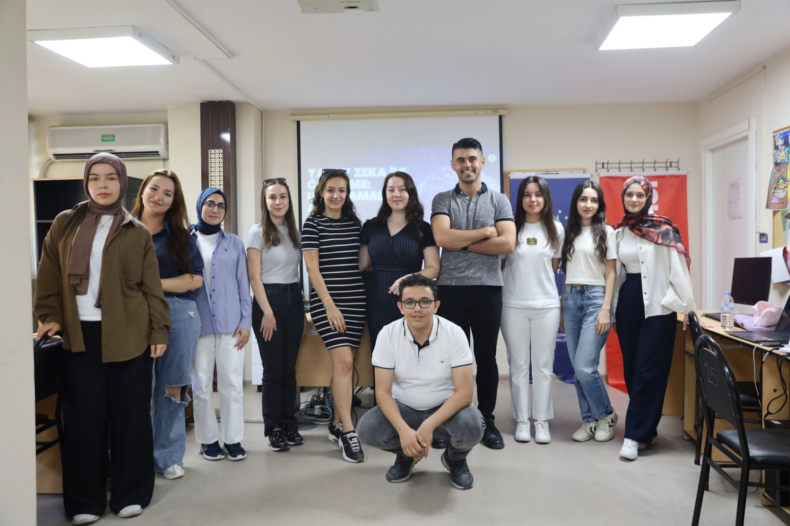 ‘Yapay zeka ile öğrenme: Uygulamalı atölye eğitiminde ise teknolojik gelişmelerin ışığında hayatın birçok alanını etkileyen yapay zeka kullanımı ve yapay zeka uygulamaları ele alındı. Dr. Yasemin Yeşilbaş Özenç tarafından yürütülen eğitimde, sohbet robotları, metin yazma ve kaynak, literatür taraması, metin özetleme, çeviri ve dilbilgisi, sosyal medya içerik üretimi gibi konularda aktif olarak kullanılan yapay zeka uygulamaları örnekler çerçevesinde ele alındı. Eğitimlerin sonunda katılım sağlayan öğrencilere sertifikaları takdim edildi.
