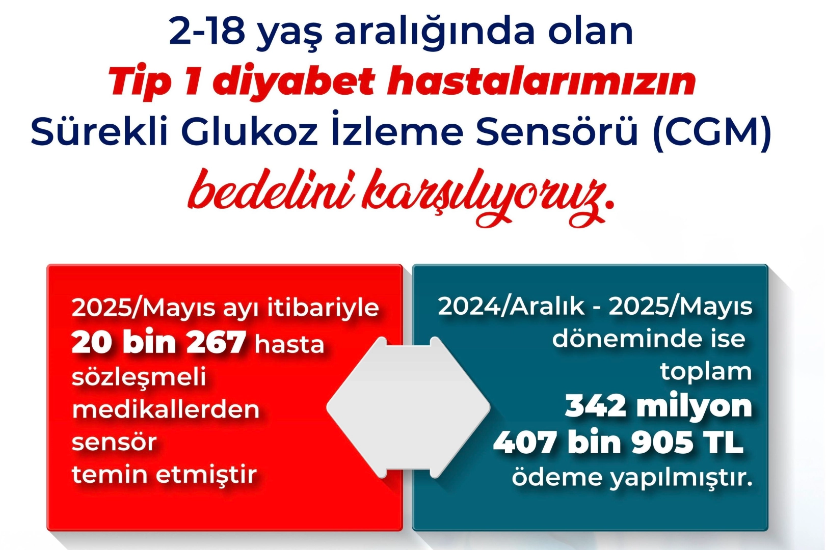Çalışma ve Sosyal Güvenlik Bakanı Vedat Işıkhan, sosyal medya hesabından 18 yaş altındaki Tip 1 Diyabet hastaları için geri ödeme kapsamına alınan sürekli glukoz izlem cihazlarından yararlananların sayısını açıkladı. Bakan Işıkhan, şu ifadelere yer verdi: "18 yaş altındaki Tip 1 Diyabet hastaları için geri ödeme kapsamına aldığımız sürekli glukoz izlem cihazlarından bugüne kadar 20 bin 267 evladımız yararlandı. Geçtiğimiz senenin Aralık ayından bugüne kadar toplam 343 milyon liraya yakın bedeli SGK tarafından karşıladık. Vatandaşlarımızı destekleyici, hayatlarını kolaylaştıracak uygulamaları gerçekleştirmeye devam edeceğiz."