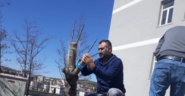 İnsanların doğaya karşı duyarlılıklarını artırmak isteyen Samsun’un Kavak ilçesinde görevli bir öğretmen öğrenciler yesin diye okulda, vatandaş yesin diye de çevredeki yabani meyve ağaçlarına aşı yapıyor.