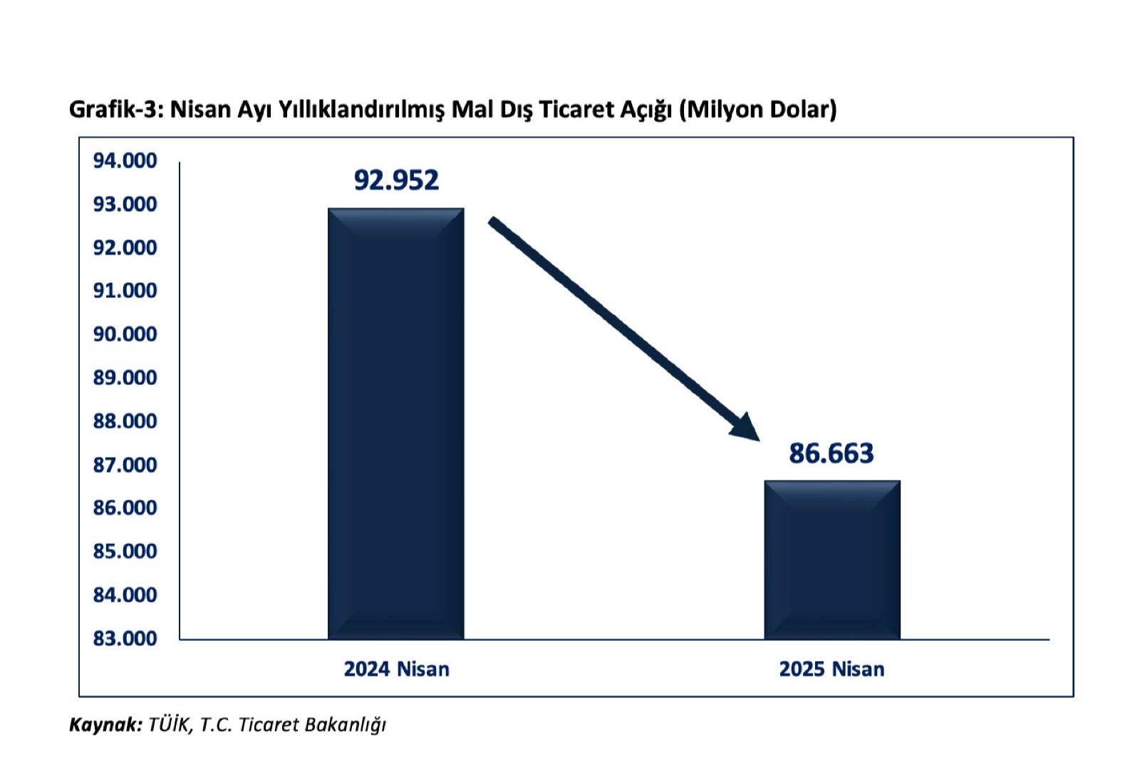 Ticaret Bakanı Ömer Bolat, sosyal medya hesabından iç ve dış ticarete ilişkin açıklamalarda bulundu. Bolat, Türkiye ekonomisinin ihracat temelli olarak üretmeye, büyümeye, döviz kazanmaya, ihracatını artırmaya, dış ticaret ve cari açığı stabil ve kontrol altında tutmaya ettiğini belirtti. "Nisan ayı ihracatı 7,8 artarak 20,8 milyar dolar olarak gerçekleşti" Nisan ayı ihracatının küresel ekonomide yaşanan olumsuz şartlara ve artan belirsizliklere rağmen yüzde 7,8 artarak 20,8 milyar dolar olarak gerçekleştiğini ifade eden Bolat, böylelikle en yüksek ikinci Nisan ayı ihracatına ulaşıldığını kaydetti. Bolat, "Nisan ayı itibari ile yıllıklandırılmış ihracatımız bir önceki yılın aynı ayına göre 6,9 milyar dolar artarak tüm zamanların en yüksek değeri olan 264,9 milyar dolara ulaşmıştır" dedi. Bolat, Avrupa Birliği'nin (AB) yıllıklandırılmış ithalatının hala yatay seyrini korumasıyla tarife artışlarının getirdiği belirsizliğin ve Çin'in ihracat fiyatlarını düşürmeye devam etmesiyle beraber gelen zorlu rekabet şartlarına rağmen Türkiye'nin ihracatında artışın devam ettiğini dile getirdi. Hükümet olarak mal ve hizmet ihracatını artırmaya ve yerli üreticiyi korumaya yönelik politikalarımızı kararlılıkla sürdüreceklerini altını çizen Bolat, cari işlemler hesabında istikrarlı bir seyir sağlanacağını ve makroekonomik istikrarın güçlendirileceğini vurguladı. "Dış ticaret açığımız geçen yılın aynı ayına göre 6,3 milyar dolar gerileyerek 86,7 milyar dolar olarak gerçekleşmiştir" Üretim-yatırım-istihdam-ihracat-adil bölüşüm ve katma değerli üretim önceliklerinde oluşturulan kalkınma stratejisi ile gelecek dönemde Türkiye ekonomisini bölgesinde ve küresel arenada cazibe merkezi olarak öne çıkarmayı amaçladıklarının altını çizen Bolat, sözlerine şu şekilde devam etti: "Ticaret Bakanlığımız ile Türkiye İstatistik Kurumu iş birliğinde üretilen Nisan ayı dış ticaret verilerine göre; ihracatımız yüzde 7,8 artarak 20,8 milyar dolar olmuştur. 2025 yılının Ocak-Nisan döneminde ihracatımız geçen yılın aynı dönemine göre yüzde 3,7 artışla 86,1 milyar dolar olmuştur. 2025 Nisan ayı itibari ile yıllıklandırılmış ihracatımız bir önceki yılın aynı ayına göre 6,9 milyar dolar artarak 264,9 milyar dolara ulaşmıştır. 2025 Nisan ayında ithalat bir önceki yılın aynı ayına göre yüzde 12,7 artarak 32,9 milyar dolar olmuştur. 2025 yılının Ocak-Nisan döneminde ithalatımız geçen yılın aynı dönemine göre yüzde 6,6 artışla 120,7 milyar dolar olmuştur. 2025 Nisan ayında yıllıklandırılmış ithalatımız bir önceki yılın aynı ayına göre 0,6 milyar dolar artarak 351,5 milyar dolar olarak gerçekleşmiştir. Dış ticaret açığımız 2025 Nisan ayında yüzde 22,3 oranında artarak 12,1 milyar dolar olarak gerçekleşmiştir. 2025 yılının Ocak-Nisan döneminde dış ticaret açığımız geçen yılın aynı dönemine göre yüzde 14,7 artışla 34,6 milyar dolar olmuştur. Yıllıklandırılmış dış ticaret açığımız geçen yılın aynı ayına göre 6,3 milyar dolar gerileyerek 86,7 milyar dolar olarak gerçekleşmiştir."