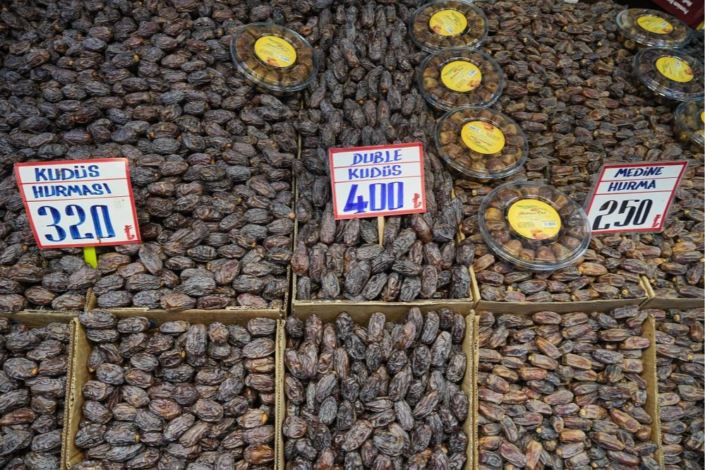 On bir ayın sultanı olan Ramazan ayı ile özdeşleşmiş hurma, Bursa'daki çarşı ve pazarda yerini aldı. Kilosu 200 ile 400 lira arasında değişen hurma, 15 çeşidiyle tezgahları süsledi. İftar ve sahur alışverişi yapmak için çarşıya akın eden insanlar kapalı çarşı esnafının yüzünü güldürdü. Daha çok kahvaltılık ürünler tercih eden vatandaşlar Ramazan için alışveriş yaptı.