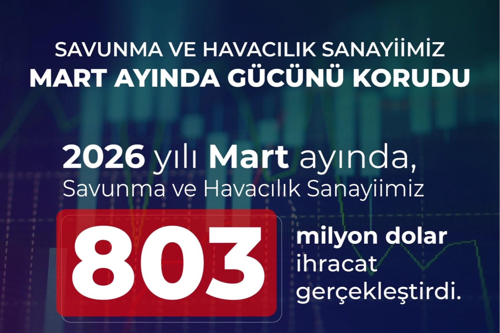 Savunma Sanayii Başkanı Görgün, sosyal medya hesabından yaptığı paylaşımda, sektörün ihracat performansına ilişkin verileri paylaştı. Görgün, savunma ve havacılık sanayisinin 2026 yılı mart ayında 803 milyon dolar ihracata imza attığını belirterek 2026 yılı Ocak-Mart döneminde ise ihracat, geçen yılın aynı dönemine göre yüzde 12,1 artarak 1 milyar 910 milyon dolara ulaştığını kaydetti.