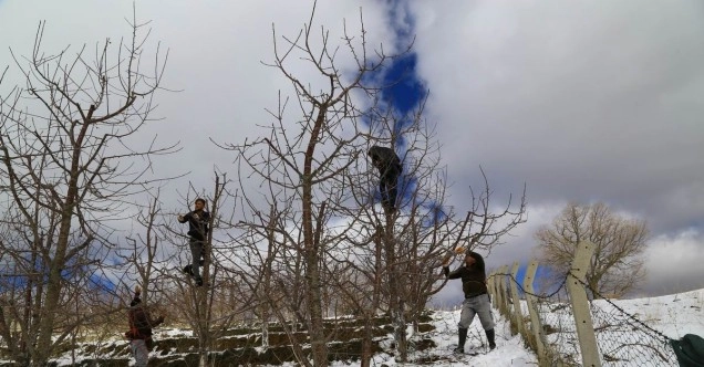 39 bin dekar alanda ihracata yönelik kiraz yetiştiriciliği yapılan ilçede, üreticiler yeni sezon için kiraz ağaçlarında budama çalışmaları yapıyor. Kar kalınlığının 15 santimetreyi bulduğu bahçelerde budama yapan işçiler, kirazın kalite ve verimini artırmak için ter döküyor.