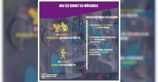Bu arada, bin 700 kişiye aile içi şiddet eğitimi verildi. Bin 545 kadının cep telefonlarına Kadın Destek Programı (KADES) uygulaması yüklendi. 3 bin 500 adet KADES uygulaması kapsamında el broşürü dağıtıldı.