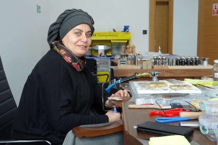 Ürünlerde hem modern çizgilere hem de geçmişin izlerine yer vermeye özen gösterdiklerini dile getiren Demirer, "Bu mesleğe 9 yıl önce, takı tasarımı üzerine 2 yıl eğitim alarak başladım. Daha sonra farklı kurumlarda çalıştıktan sonra Trabzon Büyükşehir Belediyesi Kadın İstihdam ve Yaşam Merkezi'nde Takı Tasarım Teknolojisi Eğitmeni olarak göreve başladım. Şu anda burada tasarım ve tema odaklı üretimler yapıyoruz. Bu mesleğe 40 yaşından sonra başladım. Aslında böyle bir bölüm aklımda yoktu. Mesleğimi bugüne kadar severek yaptım. Burada, gümüş takı atölyesi olarak hem geçmişi günümüze yansıtmayı hem de yeni neslin bu sanatla tanışmasını istiyoruz. Dokuma atölyesindeki arkadaşlarımızın ürettiği kumaşları, el sanatlarının farklı aşamalarından geçirerek gümüşle birleştirmeye çalıştık. Ürünlerin hem modern hem de günümüze uygun olmasını hedeflerken, geçmişin izlerini de silmemeye özen gösterdik. Öncelikle desenimizi ve temamızı oluşturuyor, tasarımımızı çiziyoruz. Ardından bu tasarımları gümüş plakaya yapıştırarak, teknikleri belirledikten sonra kesim aşamasına geçiyoruz. Şekiller ortaya çıktıktan sonra ürünleri çeşitli aşamalardan geçiriyoruz. En sonunda küpe, bilezik, bileklik, kolye başta olmak üzere farklı temalarda; kişiye ve yöreye özgü broş, toka ve akla gelebilecek her türlü aksesuarı kadın ve erkeklere yönelik olarak üretiyoruz" dedi.