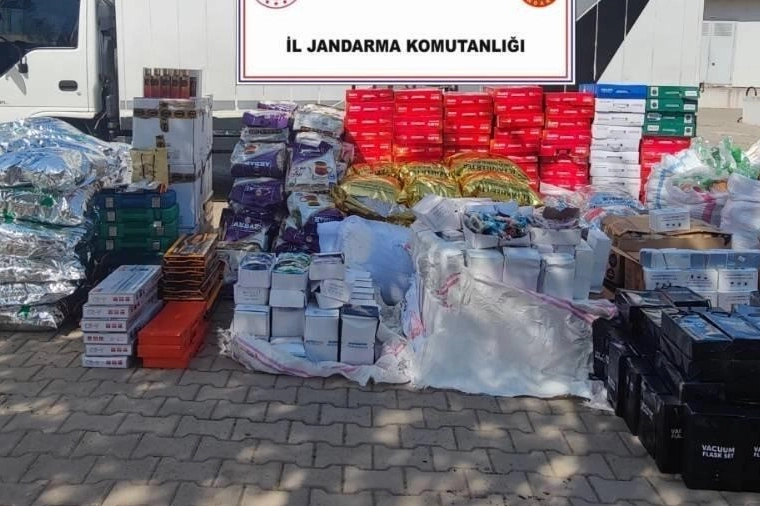 Bir araçta yapılan aramada, 1 ton 200 kilogram gümrük kaçağı çay, 4 bin 900 adet faturasız cep telefonu aksesuarı, 2 bin 700 adet faturasız güneş gözlüğü, 720 adet kozmetik malzemesi, 500 adet faturasız oyuncak, 110 adet faturasız elektrikli ocak, 170 adet faturasız termos, 22 adet gümrük kaçağı kol saati, 5 adet faturasız dikey süpürge, 40 set hırdavat malzemesi ele geçirildi.
