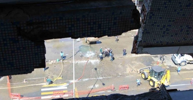 Trabzon’un Ortahisar ilçesindeki Yenimahalle’de patlayan ana isale hattı borusundan çıkan basınçlı suyun büyük hasara yol açtığı 7 katlı binada hasar tespit çalışması başlatıldı. Ana isale hattının patladığı o anlar çevredeki bir işyerinin güvenlik kameralarına saniye saniye yansıdı.