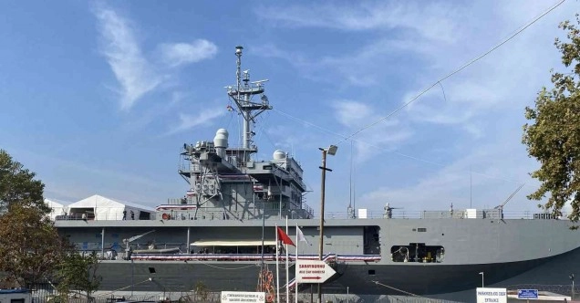Çanakkale Boğazı’ndan geçiş yaparak Marmara Denizi’ne gelen ABD Donanması’na ait LCC-20 borda numaralı ’USS Mount Whitney’ adlı amfibi komuta kontrol gemisi akşam saatlerinde Sarayburnu’na demirledi. Savaş gemisinin bekleyişi sırasında nöbet tutan ABD askerleri ve yolculuk için hazırlık yapan gemi personeli görüntülendi. Sarayburnu’nda gezen yabancı turistler savaş gemisini merakla inceledi.