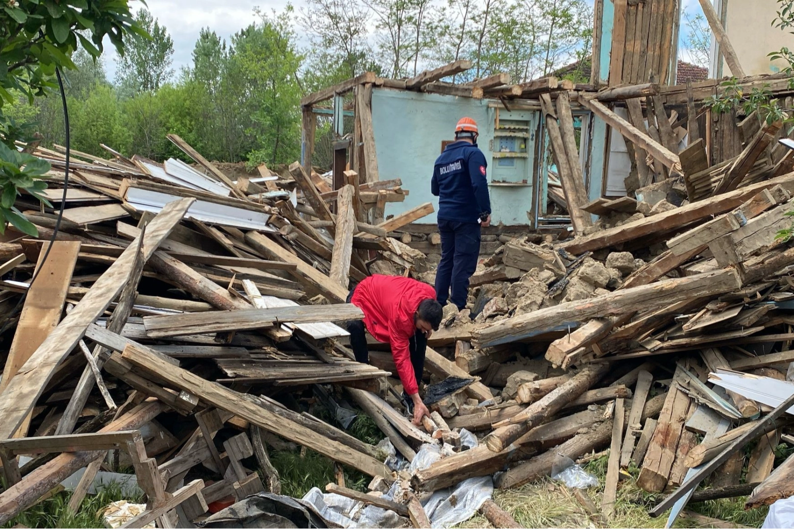 Olay, saat 12.00 sıralarında Karacaağaç Mahallesi Hacılar Sokak'ta meydana geldi. Edinilen bilgiye göre, Sedat G.'ye ait 2 katlı eski ahşap evin kontrollü yıkımı için işçiler çalışma başlattı. Yıkım sırasında ikinci katta bulunan Şaban Kocatürk (45), bir anda kırılan tahtalarla birlikte alt kata düştü. Zemine düşen ve tahtaların arasında sıkışan işçi için mesai arkadaşları durumu 112 Acil Çağrı Merkezi'ne bildirdi. İhbar üzerine olay yerine itfaiye, polis ve sağlık ekipleri sevk edildi. Göçük altında kalan işçi, çalışma arkadaşlarının da yardımıyla bulunduğu yerden çıkarıldı. Sağlık ekipleri tarafından olay yerinde ilk müdahalesi yapılan Kocatürk, İzzet Baysal Devlet Hastanesi Köroğlu Ünitesi'ne kaldırıldı. Yaralı işçinin sağlık durumunun iyi olduğu öğrenildi. Olayla ilgili inceleme başlatıldı.