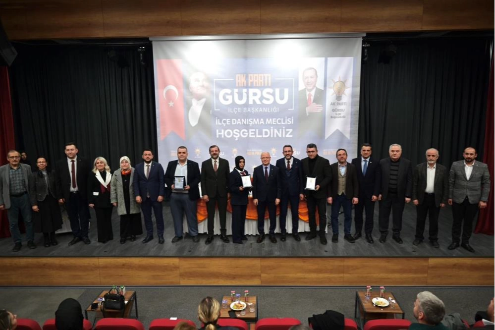 Gürsu Belediye Başkanı Mustafa Işık ise konuşmasında ilçede hayata geçirilen ve devam eden yatırımlara ilişkin değerlendirmelerde bulundu. Hizmet anlayışlarının merkezinde vatandaşın yer aldığını vurgulayan Işık, "Gürsu’da hemşehrilerimizle bütünleşerek çalışıyoruz. İlçemizin ihtiyaçlarını sahada dinliyor, Gürsu için durmadan çalışmaya devam ediyoruz" dedi. AK Parti Gürsu İlçe Başkanı Selçuk Karaduman da kongre sonrası geçen 13 aylık sürece ilişkin değerlendirmelerde bulundu. Gürsu teşkilatına verilen bin 600 kişilik üye hedefinin de üzerine ulaştıklarını belirten Karaduman, Mayıs ayı öncesi dönemle birlikte, Gürsu teşkilatına toplamda 2 bin 59 yeni üye kaydı gerçekleştirildiğini açıkladı. Karaduman, "Bugün ilçemizde her 5 seçmenden biri partimize üyedir. Bu başarı, teşkilatımızın disiplinli çalışmasının, birlik ve beraberliğinin sonucudur" ifadelerini kullandı. Açılış konuşmalarının ardından danışma meclisi oturumuna geçildi. Teşkilat mensuplarının soruları tek tek cevaplandı. Program, yeni üyelere rozet takdimi ile sona erdi.