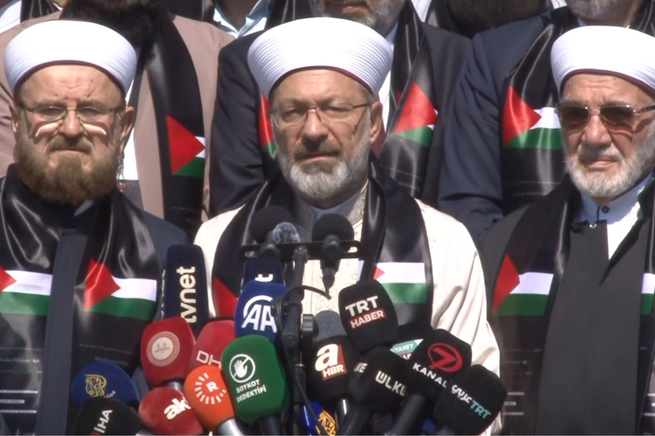 Diyanet İşleri Başkanı Ali Erbaş, "Malumlarınız olduğu üzere, Dünyanın 50 ülkesinden 150’yi aşkın ilim insanı Gazze için yapılabilecekleri, yapılması gerekenleri müzakere etmek üzere İstanbul’da kapsamlı bir konferans düzenlediler. Eyüp Sultan Camii’nde cuma namazının ardından bir basın toplantısıyla açılışı yapılan söz konusu çalışma hafta içi devam etti ve sona erdi. Biraz sonra söz konusu toplantı ile ilgili sonuç bildirisi dünya kamuoyu ile paylaşılacak.