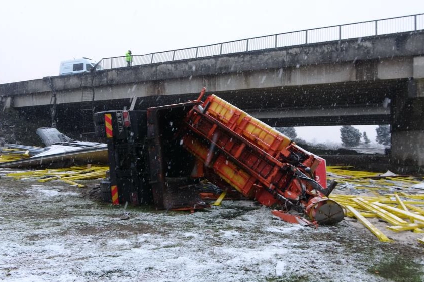 Kaza, Anadolu Otoyolu Gümüşova mevkiinde sabah saatlerinde meydana geldi. Alınan bilgilere göre, Ankara'dan İstanbul yönüne giden Metin Çakmak (50) idaresindeki 74 DE 080 plakalı demir yüklü tır, Sultaniye köyü mevkiinde köprü üzerinde kar nedeniyle tuzlama yapan Recep Gülaçtı (49) idaresindeki 06 BJY 431 plakalı karayolları tuzlama aracına çarptı. Çarpışmanın etkisiyle kar kürüme aracı ve tır bariyerleri parçalayarak köprüden aşağı uçtu. Kazaya görenlerin ihbarı üzerine bölgeye jandarma ve sağlık ekipleri sevk edildi. Kazada her iki aracın sürücüsü olay yerinde hayatını kaybetti.