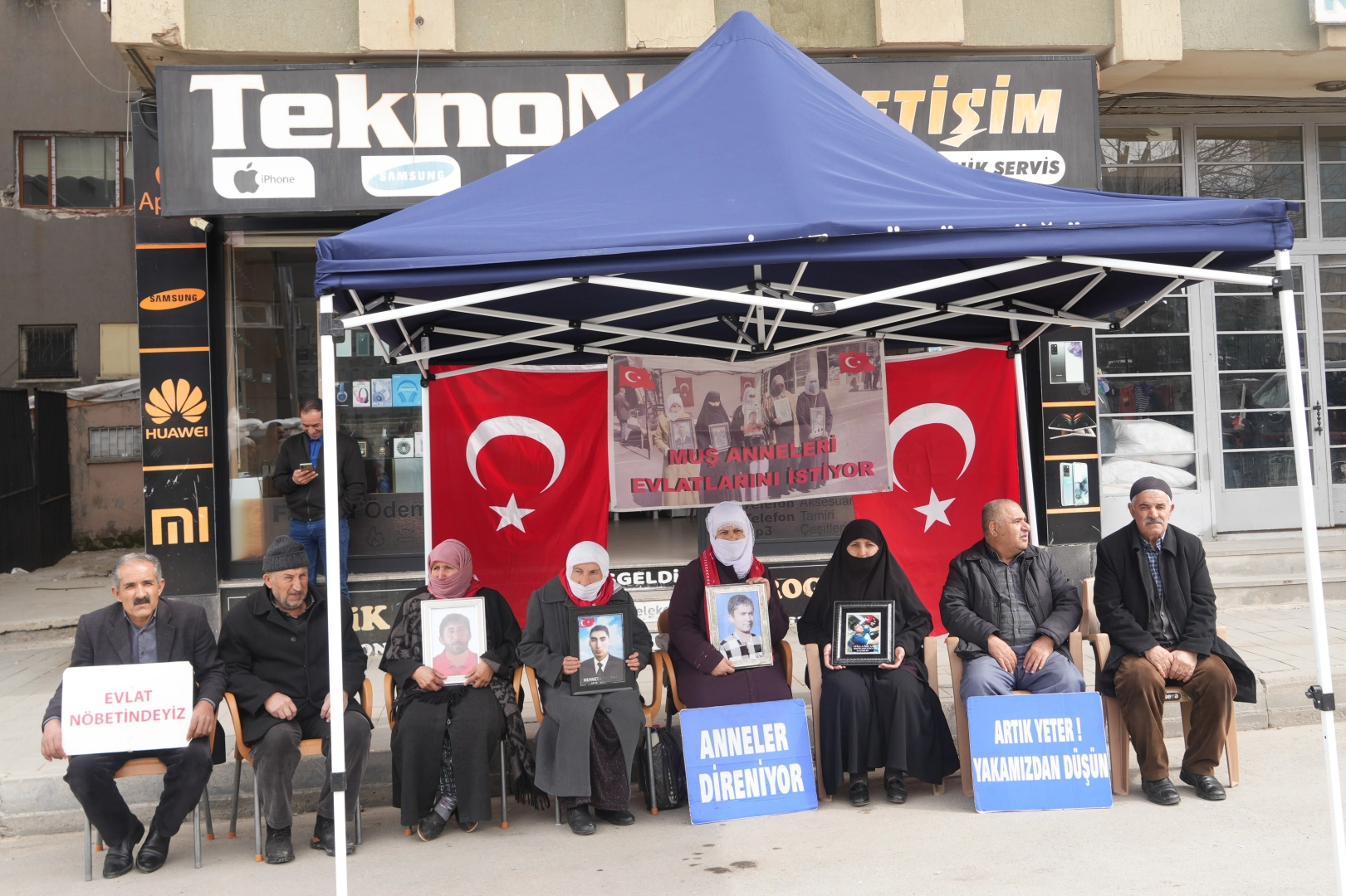 Muş’ta çocukları terör örgütü PKK tarafından kaçırılan aileler, evlat nöbetine kararlılıkla devam ediyor. Yıllardır çocuklarına kavuşma ümidiyle bekleyen anne ve babalar, her fırsatta seslerini duyurmaya çalışıyor. Çocuklarına kavuşma ümidiyle her hafta çarşamba günü DEM Parti il binası önünde bir araya gelen aileler, "Anneler direniyor" ve "Yeter artık evlatlarımızı bırakın" yazılı pankartlar açtı. Anne ve babalar, yıllardır hasretle bekledikleri çocuklarına teslim olmaları çağrısında bulundu.